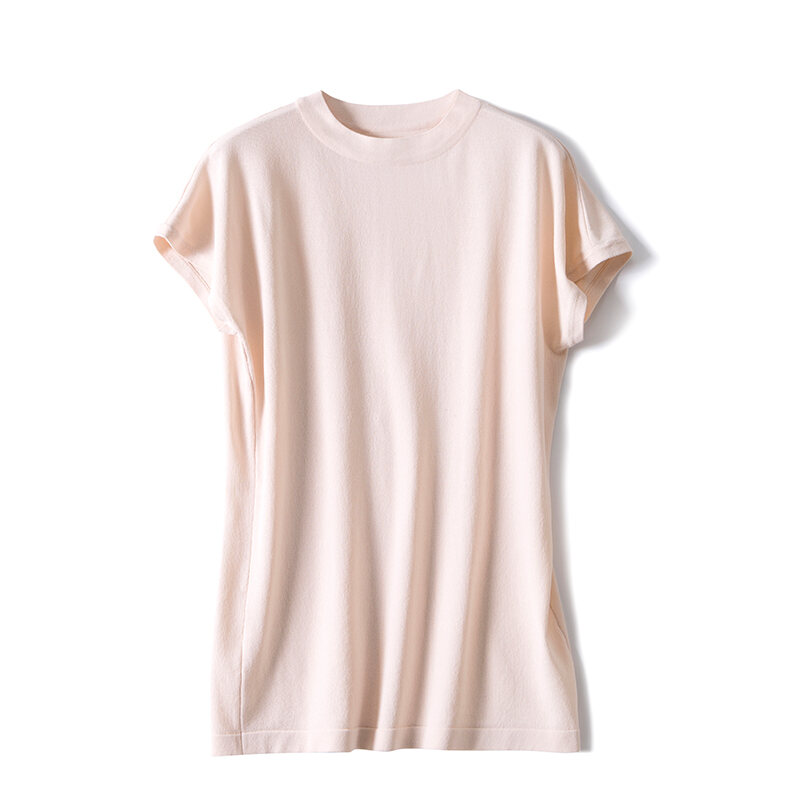 Ice Silk Short-Sleeved T-shirt for Women Summer 2021 New Loose Half High round Neck Sleeveless Sweater Solid Color Top Thin