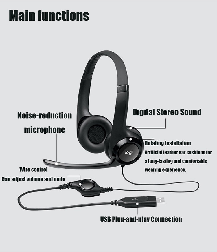 [Ready to Ship] Original Logitech H390 HIFI Stereo USB Wired Headset Headphone With Rotatable Noise Reduction Microphone For PC Laptop Computer