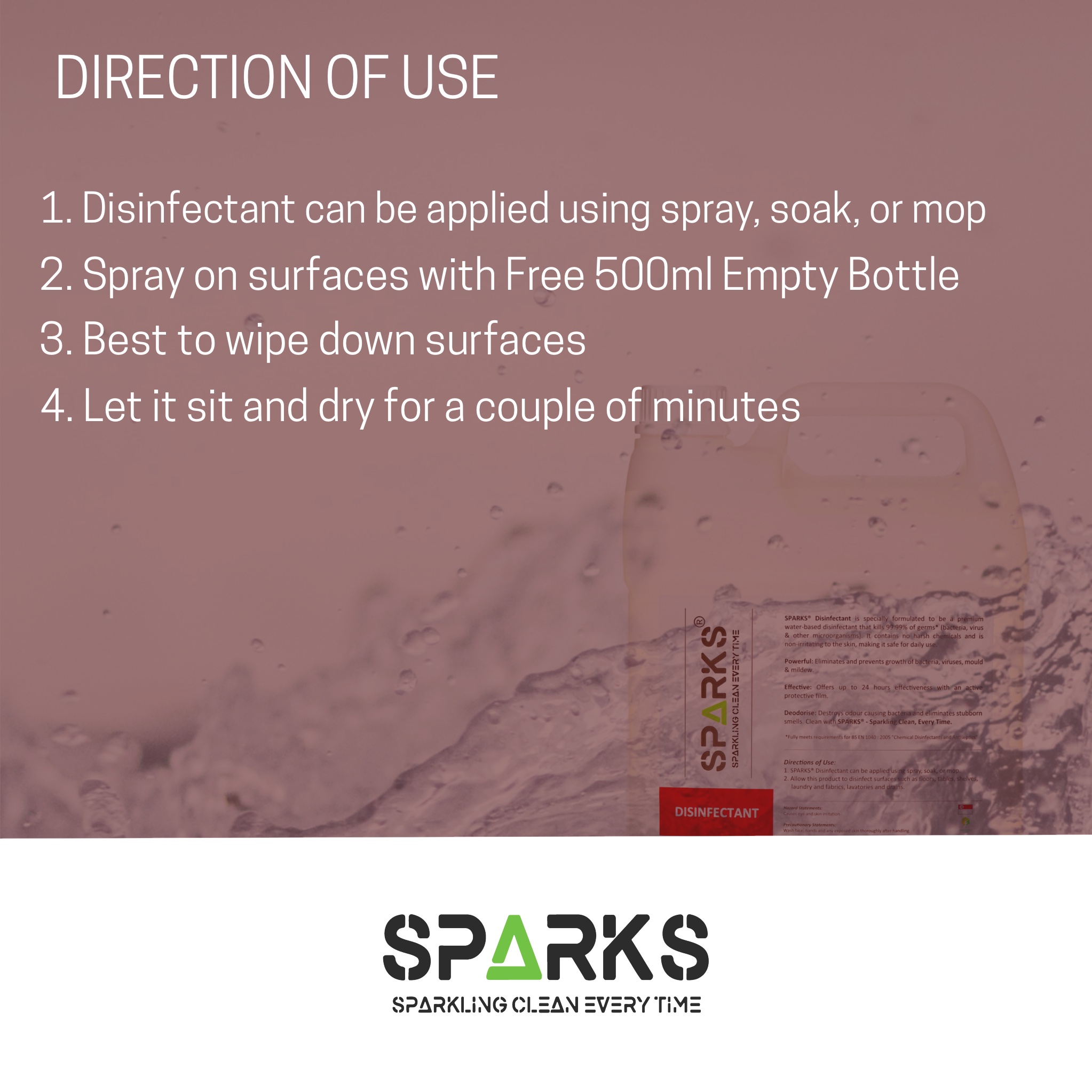 Sparks Disinfectant (5 Litres) with Pump Dispenser Top (inclusive of 500ml plastic spray bottle) - Premium Water Based Sanitiser (Sanitizer) with Multi-Action and Broad Action Kill Against Bacteria, V