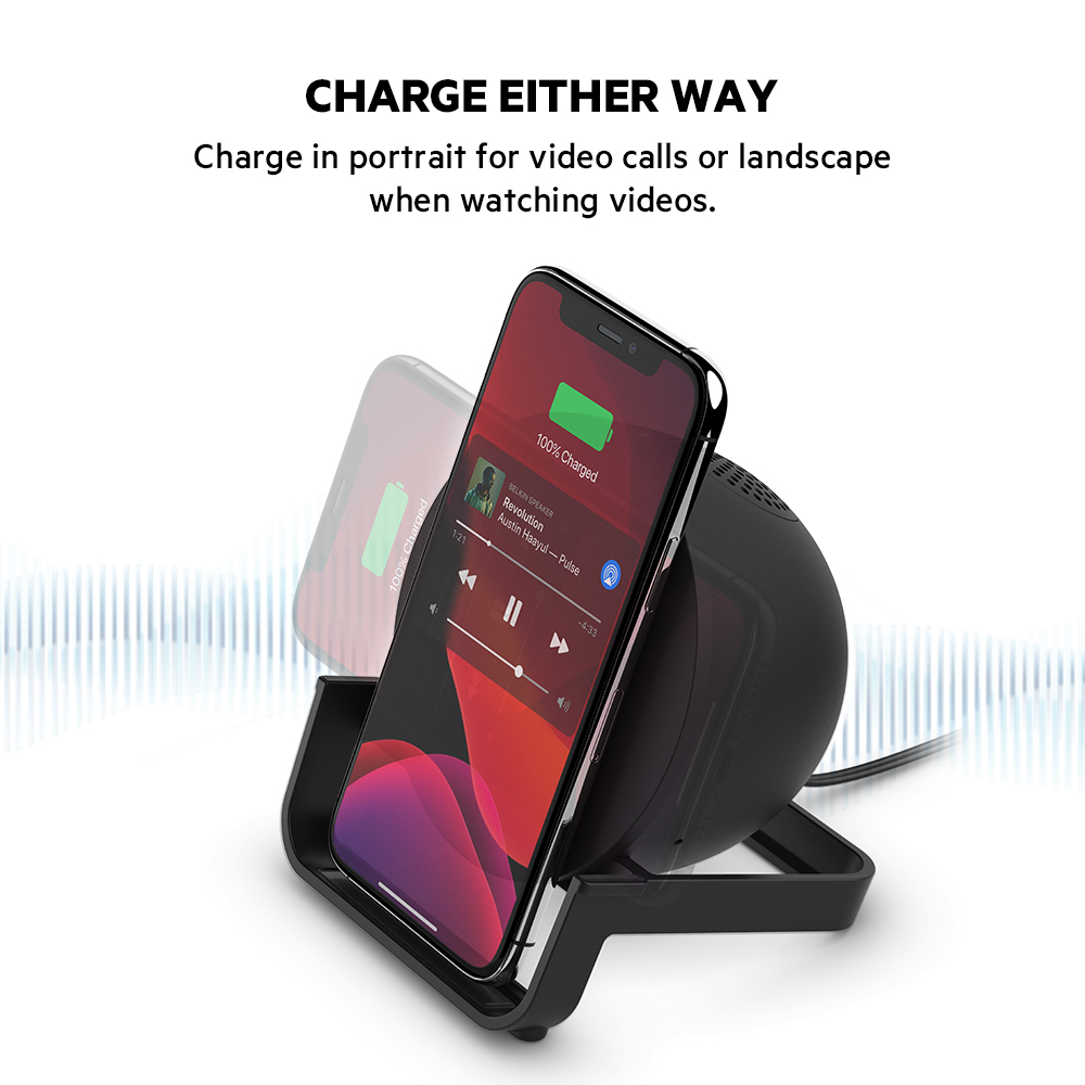 Belkin AUF001my BoostCharge Wireless Charging Stand + Speaker with Power Adapter