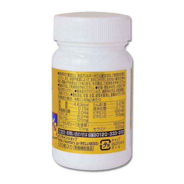 • Royal jelly is nutrient-dense honey that created by bees to provide their queen with all the nutrition she needs. Rare sesamin, which you can normally only find in sesame seeds, has incredible anti-aging benefits. Theses two potent ingredients are packed into Suntory Royal Jelly + Sesamin tablets to boost health, vitality, and beauty.