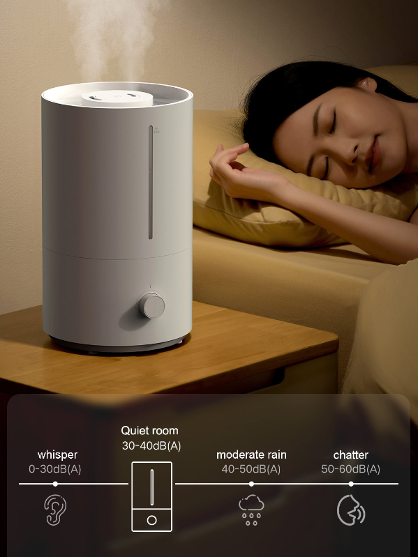 Main Features:Add water from above, easierSay goodbye to the traditional way of adding water from below, Mijia humidifier can add water directly from above. The separate design of the water tank makes adding water and cleaning more convenient.Sufficient amount of heavy fog, moisturizing all dayThe 4L large-capacity water tank is equivalent to 16 bottles of 250mL mineral water. 280mL/h strong fog volume, 10 square meters bedroom can humidify at least 9% in one hour, and relieve dryness faster. The longest humidification time can be up to 36 hours, and there is no need to add water frequently.Silver ion antibacterial material, humidification water source does not polluteThe main components of the water tank and the wading base use silver ion materials, which can effectively inhibit the growth of E. coli and Staphylococcus aureus, and the antibacterial rate can reach 99%.Light tone humidification, moisturizing does not disturbThe Mijia humidifier reduces the sound of large particles of water mist flowing and reduces fan noise, and the working sound does not exceed 38dB. The indicator light is soft and without halo, and it is not dazzling in the dark. Low noise, good sleep, comfortable sleep and moisturizing all night.Refuse to wet the table, the humidity is only in the airThe high-frequency ultrasonic atomizer vibrates 1.7 million times per second at high speed to break up water particles. The built-in baffle blocks the large particles of water, leaving only the fine water mist directly into the air through the oblique straight air duct, and the water mist is ≥50cm from the table.Large diameter designThe upper mouth of the Mijia humidifier has a diameter of 14cm, and the open mouth is easy to scrub. The sleek and delicate internal structure reduces the dead spots that hide dirt. The water tank is light and easy to lift, making cleaning more labor-saving.Double protection systemAfter the water tank is lifted, humidification is stopped. When the water source is exhausted, the machine does not dry and the orange indicator light reminds the lack of water. Double protection makes humidification safer.Stepless adjustment of the amount of fog, choose as you likeLow fog volume | Middle fog volume | High fog volumeSmall, it can be placed anywhereSmall space water storage boxReduce water storage, reduce bacteria breeding environment, humidify safe and cleanWaterproof membrane grooveBalance the air pressure of the water tank to prevent the machine from stopping workingUltrasonic welding technologyImprove product tightness and reduce the possibility of bacterial survivalSemi-closed air inlet gridReduce the possibility of internal moisture and extend product lifeNote:CN power charger charging, delivery needs to match the corresponding country adapterParameters:Rated voltage: 220V, 50HzRated power: 17.5WNoise: ≤38dBCaliber: 14cm