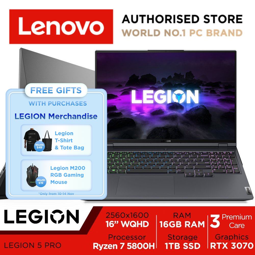 [11.11 KillerDeal] Lenovo Legion 5 Pro (16inch) | 82JQ000NSB | 16inch QHD 165Hz 500nits G-Sync | AMD Ryzen 7 5800H | NVIDIA GeForce RTX 3070(140W) | 16GB DDR4 | 1TB SSD | Win11 Home | 3Y Premium Care
