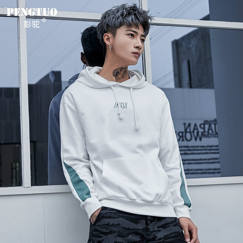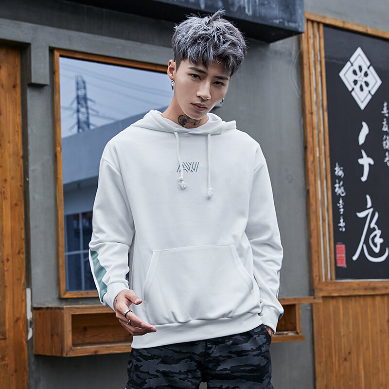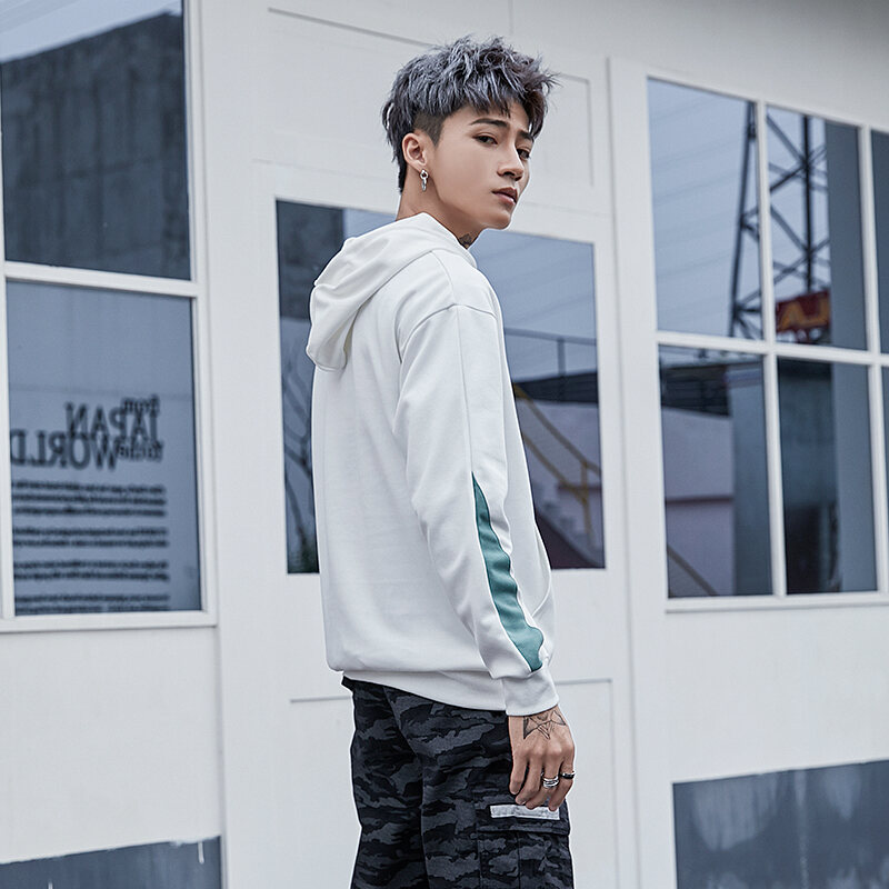 National Fashion Sweater Men's 2018 Autumn and Winter Ins Hong Kong Style Original Fashion Brand BF Style Loose Casual Contrast Color Hooded Jacket