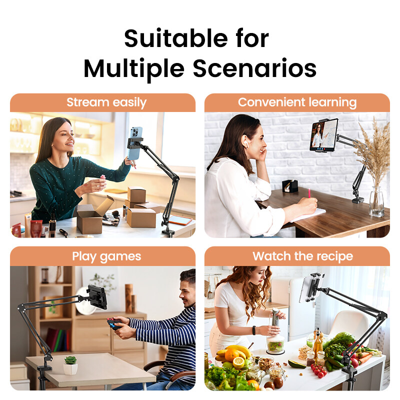 UGREEN Tablet Mount Lazy Holder for 4"-12.9" Devices Adjustable Long Arm Clamp for iPad Air Pro Mini, Redmi Note 10, iPhone 12 Pro Max, Samsung Galaxy S20, Note 20, Nintendo Switch, Max 12.9 Inch Cell