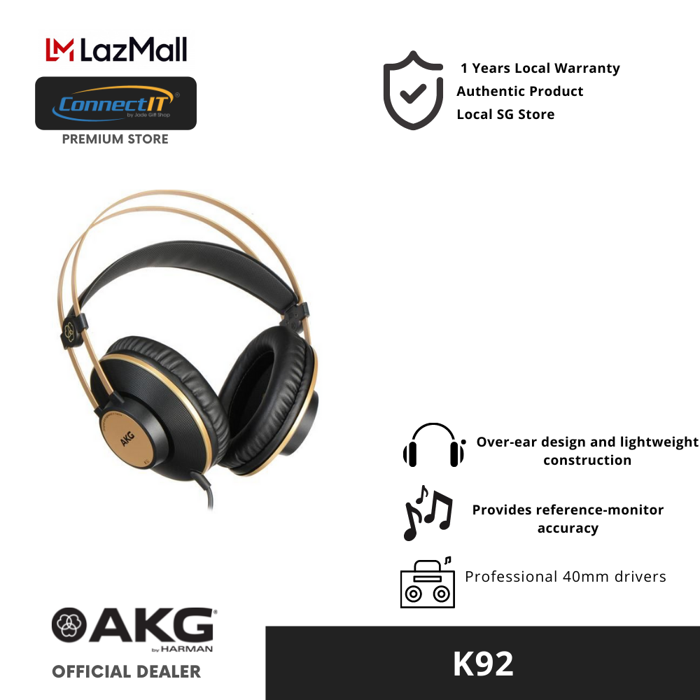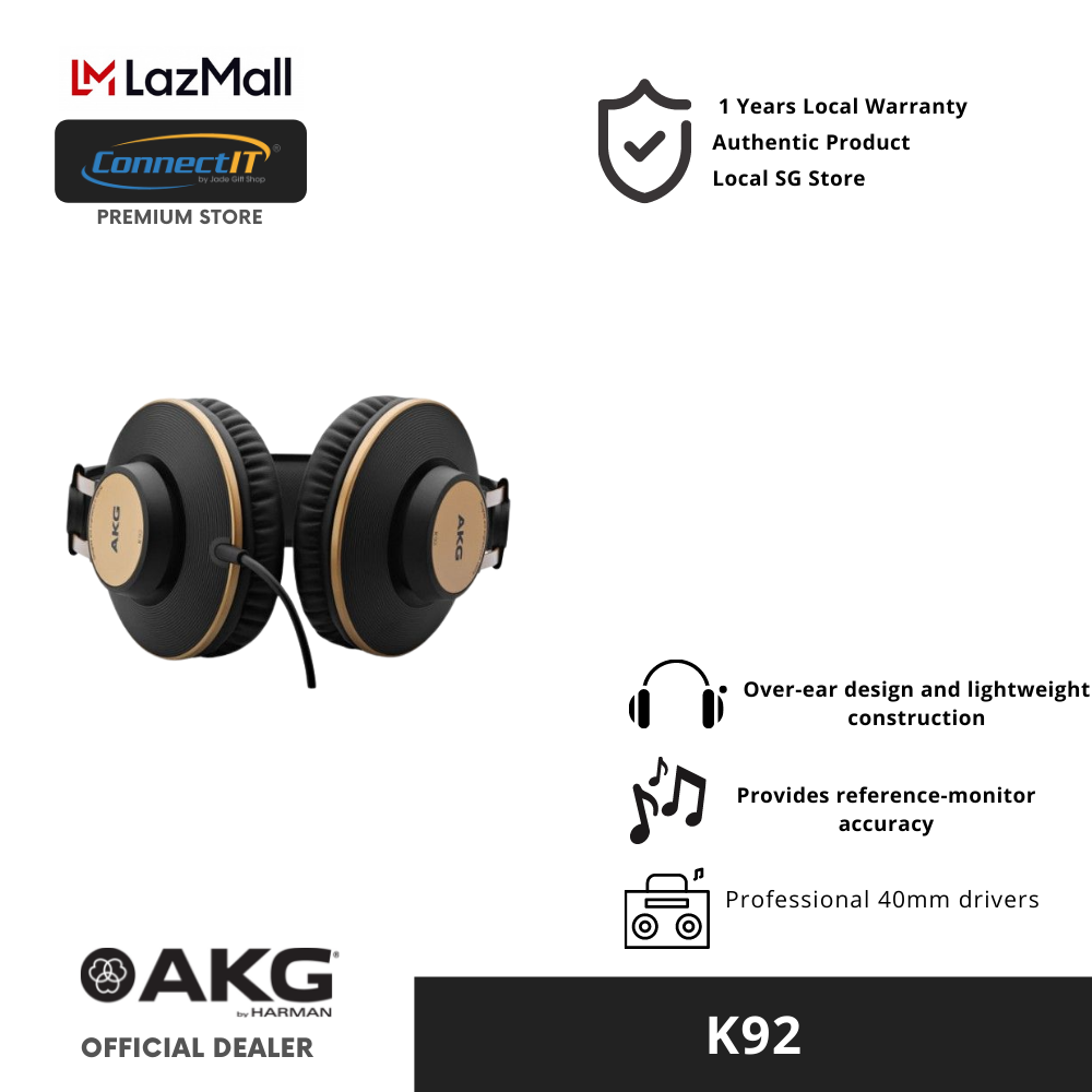 AKG K92 Closed-Back Studio Headphones with 1 Year Local Warranty