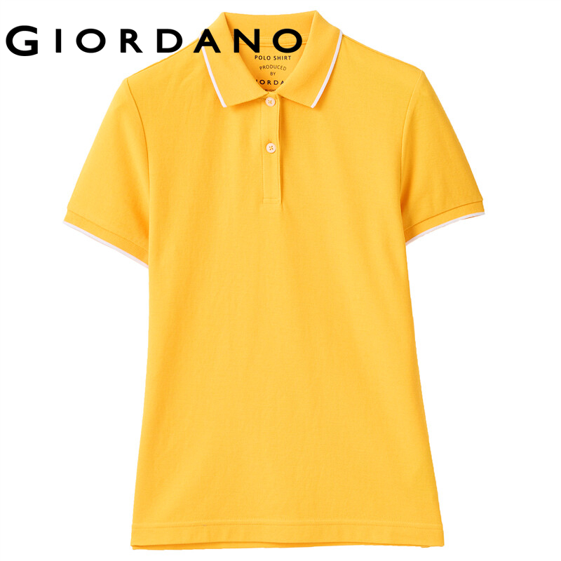 GIORDANO Women Polo Shirts French Collar 100% Cotton Polo Shirts Short Sleeve Solid Color Simple Casual Polo Shirts 05312386