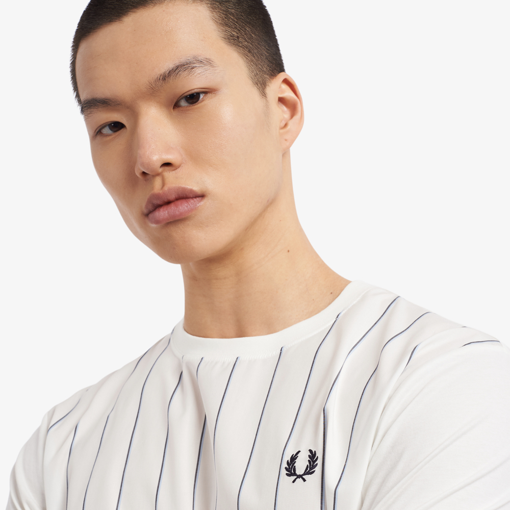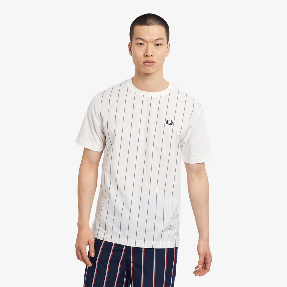 Fred Perry M1680 Woven Stripe T-Shirt - (Snow White)