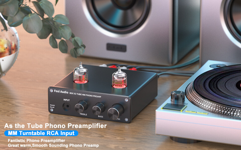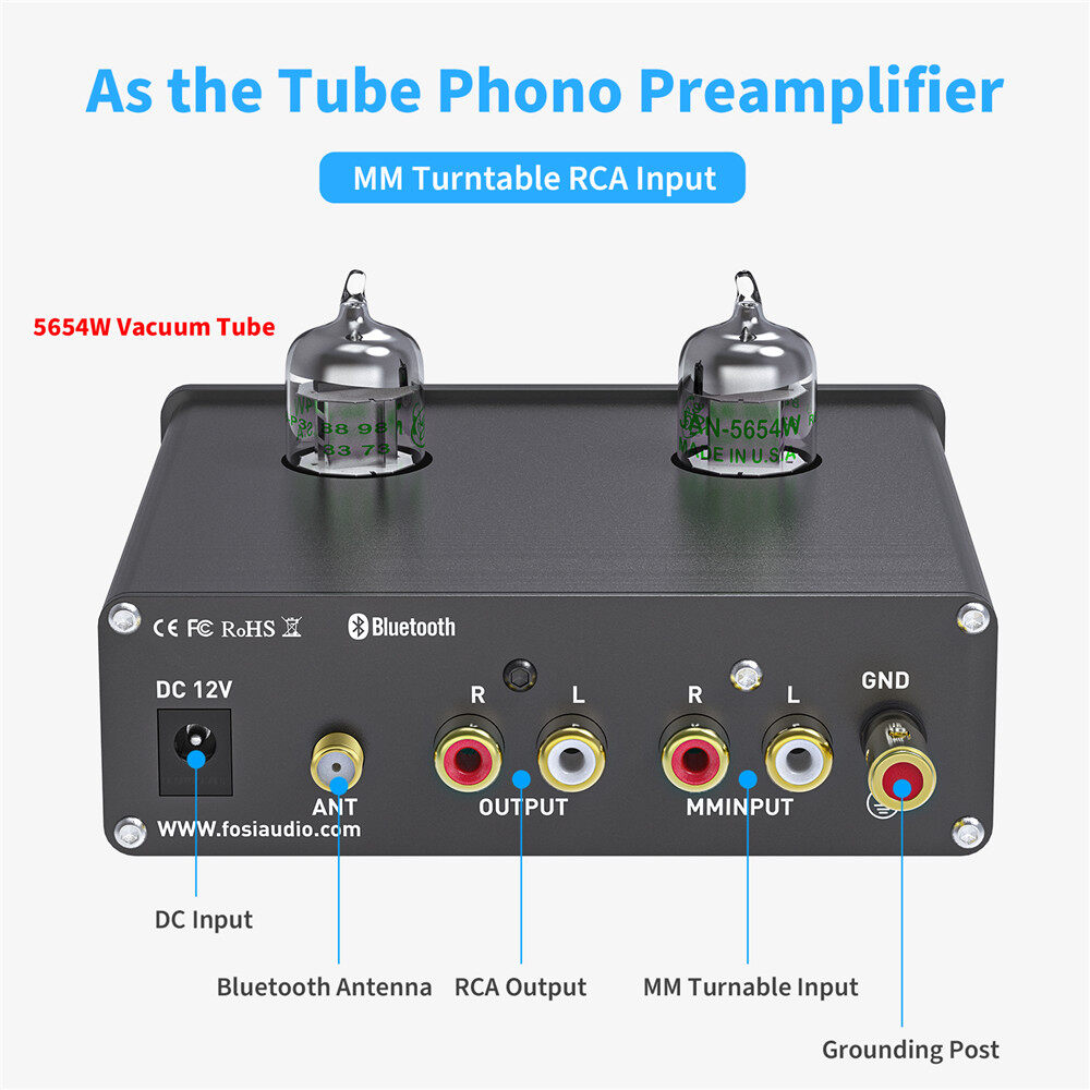 Fosi Audio Bluetooth Phono Preamp for Turntable Phonograph Preamplifier With 5654W Vacuum Tube Amplifier HiFi BOX X3 With 12V Power Supply
