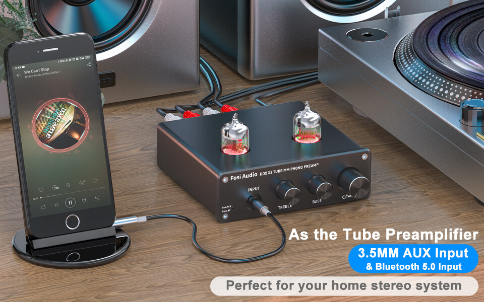 • Designed with grounding post to protect your turntable.Tube Preamplifier: It's also a tube preamp with 3.5mm AUX Input.