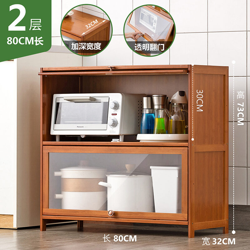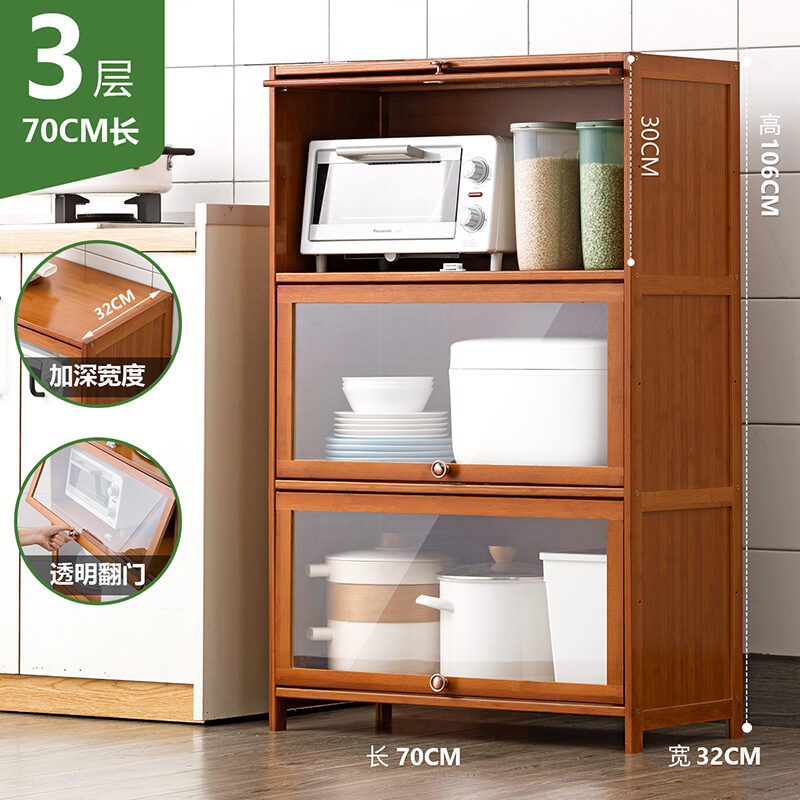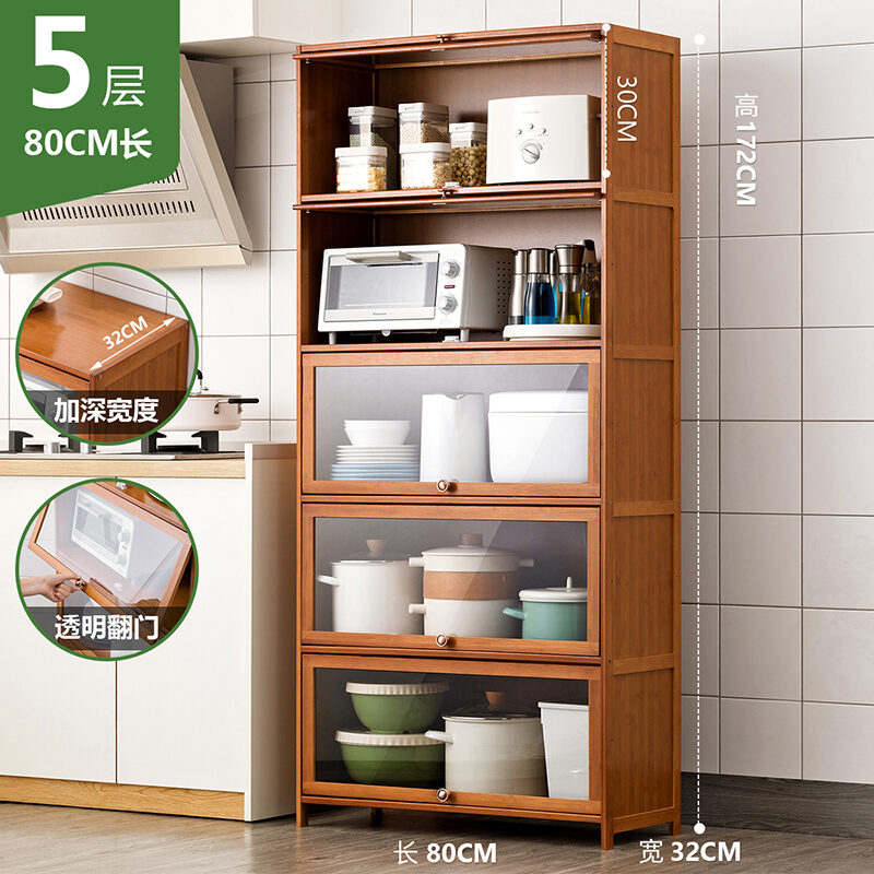 Kitchen Supplies Storage Cabinet Household Complete Floor Multi-Layer Multi-Functional Storage Rack with Door Locker Bookshelf Wood