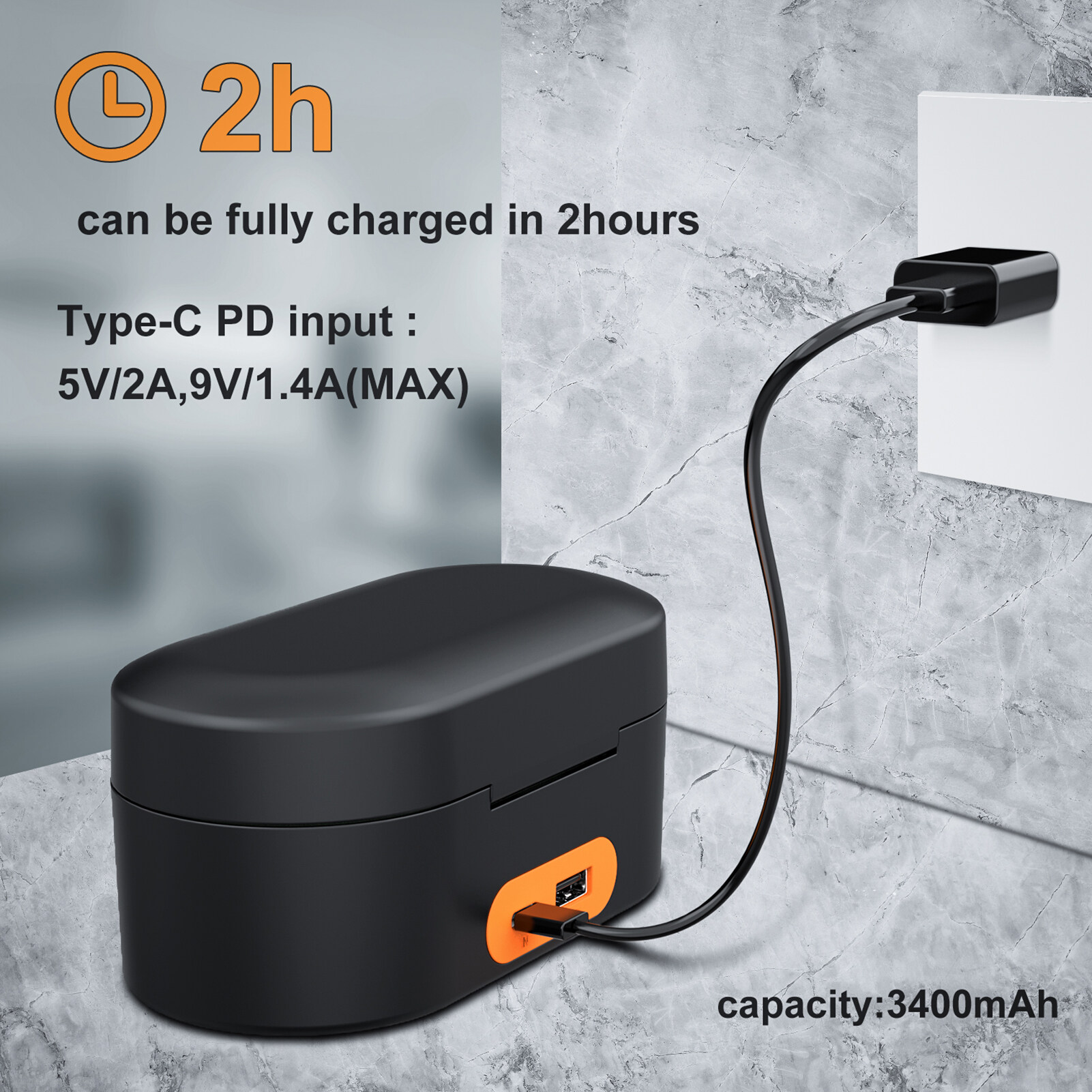 Built-in 3400mAh large capacity battery, supports charging and discharging at the same time, long-lasting battery life.