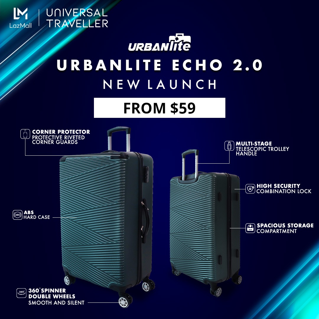 [SG Ready Stock] URBANLite Echo 2.0 - 20 / 24 / 28 inch 360° 8 Wheels Spinner Corner Protector Luggage ULH21904 3 Working Days For Delivery By Universal Traveller