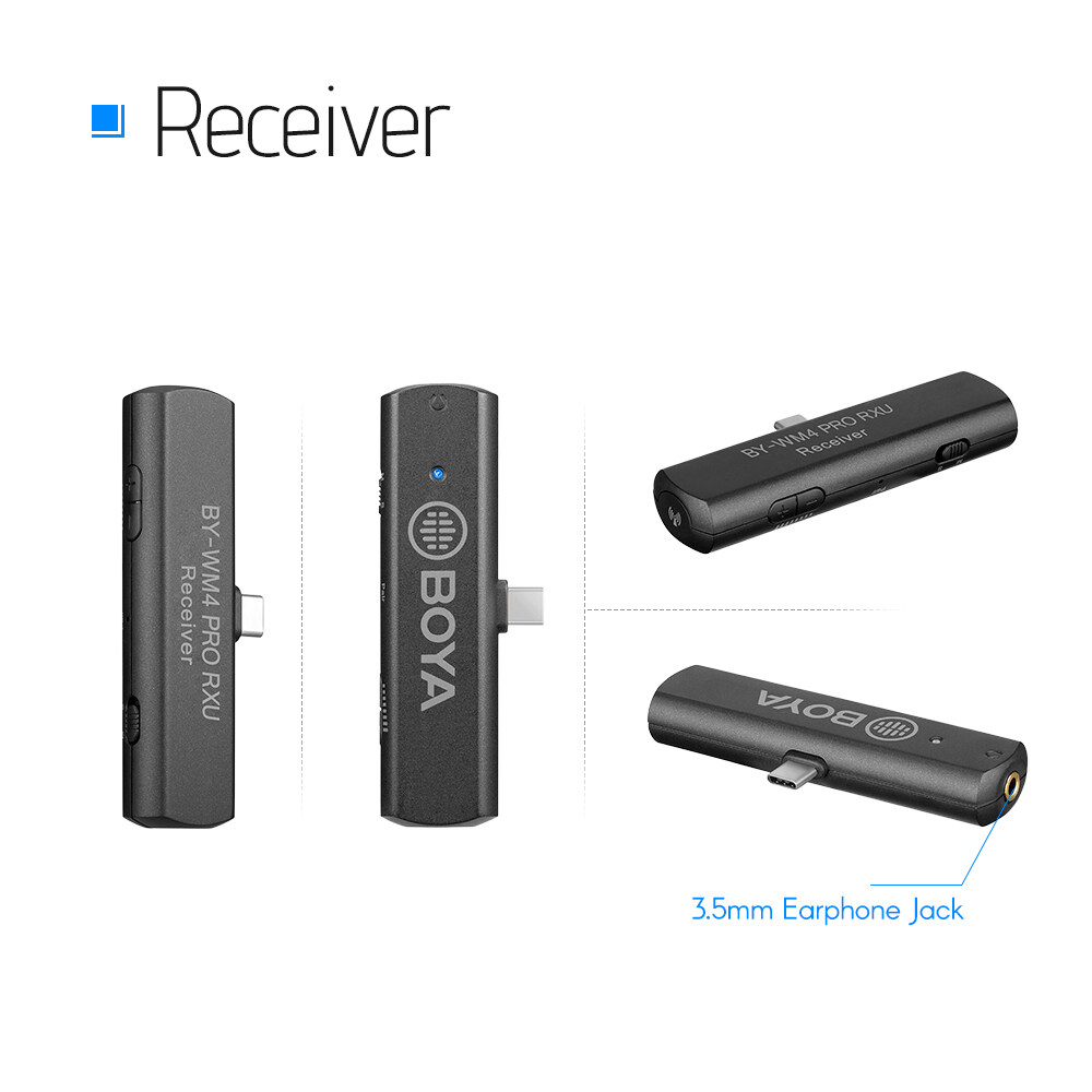 The Type-C receiver with 3.5mm earphone interface, supports real-time audio monitoring to ensure clear recording and keep the microphone work properly.