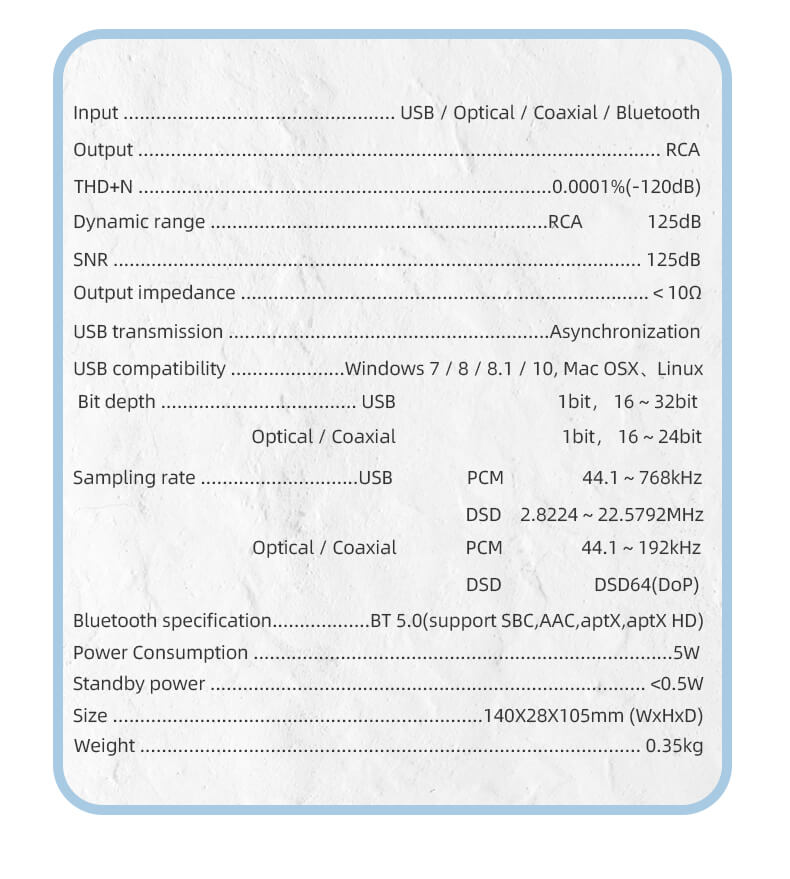 Input : USB-C / optical / Coax / BT