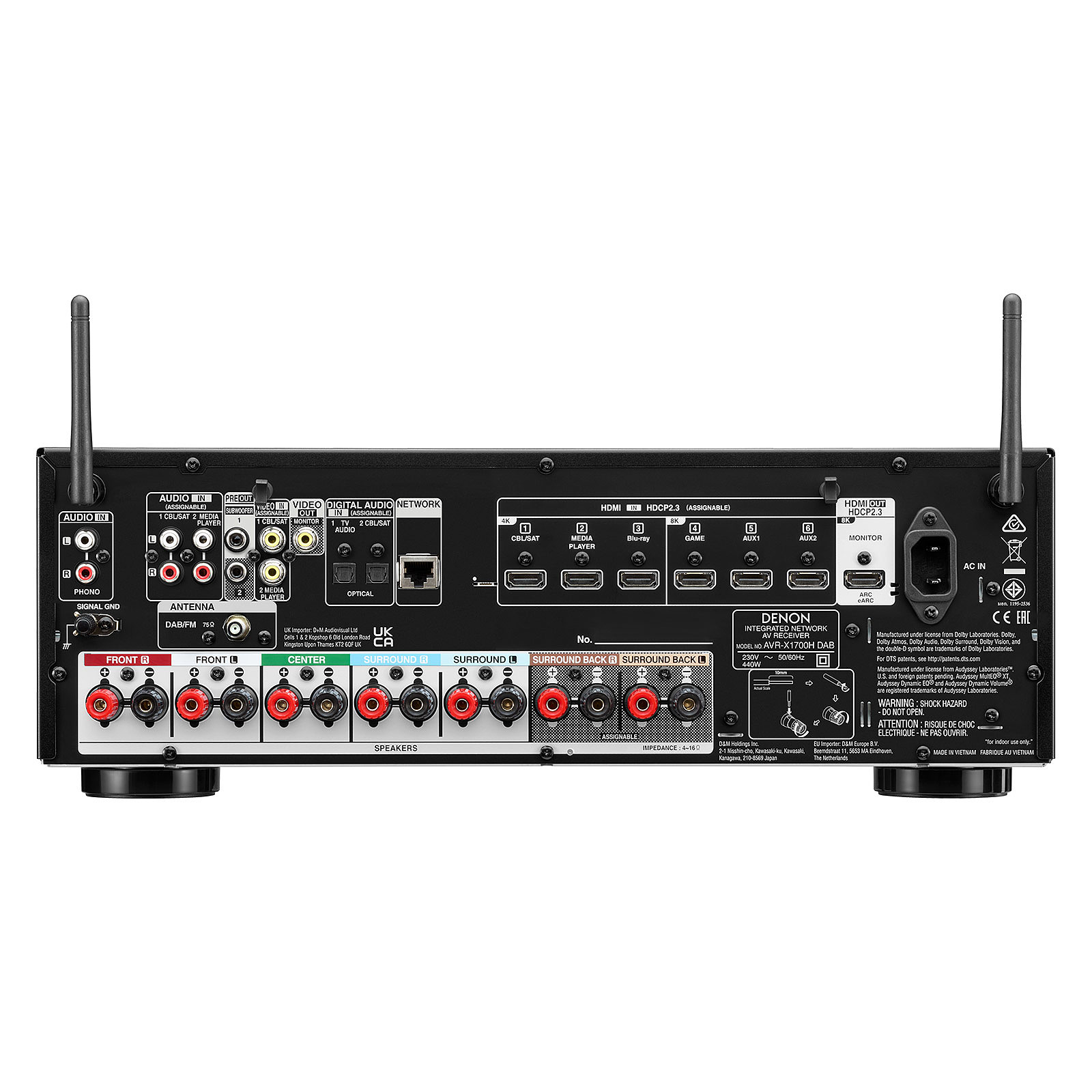 Denon AVR-X1700H 7.2 Ch FREE WHARFEDALE D300 3D (Black), Advanced 8K Upscaling, 3D Audio - Dolby Atmos & DTS Virtual:X, Amazon Alexa