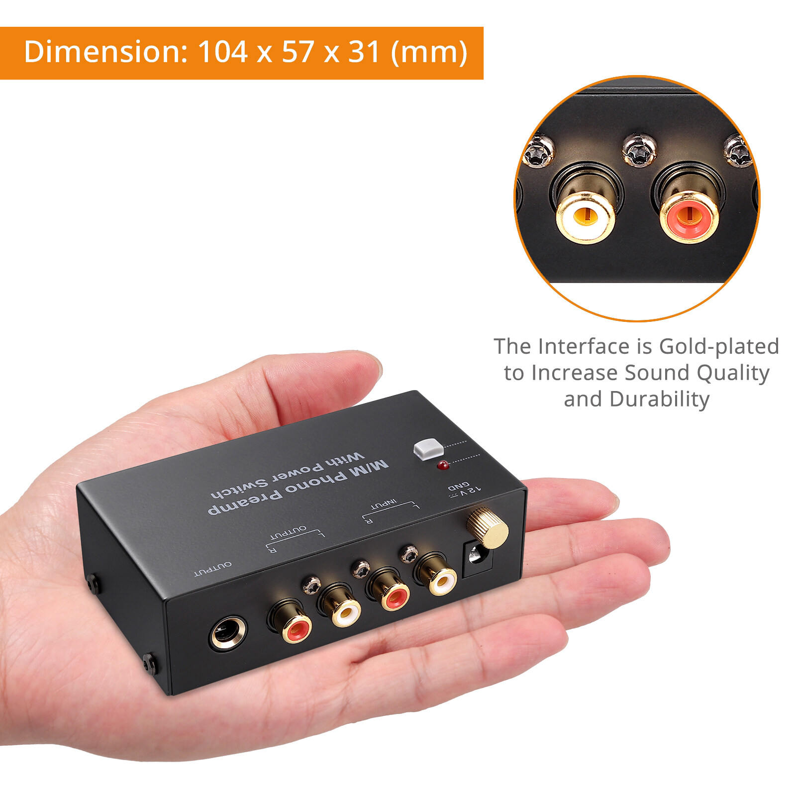 Unique switch button design, designed with grounding post to protect your turntable.
