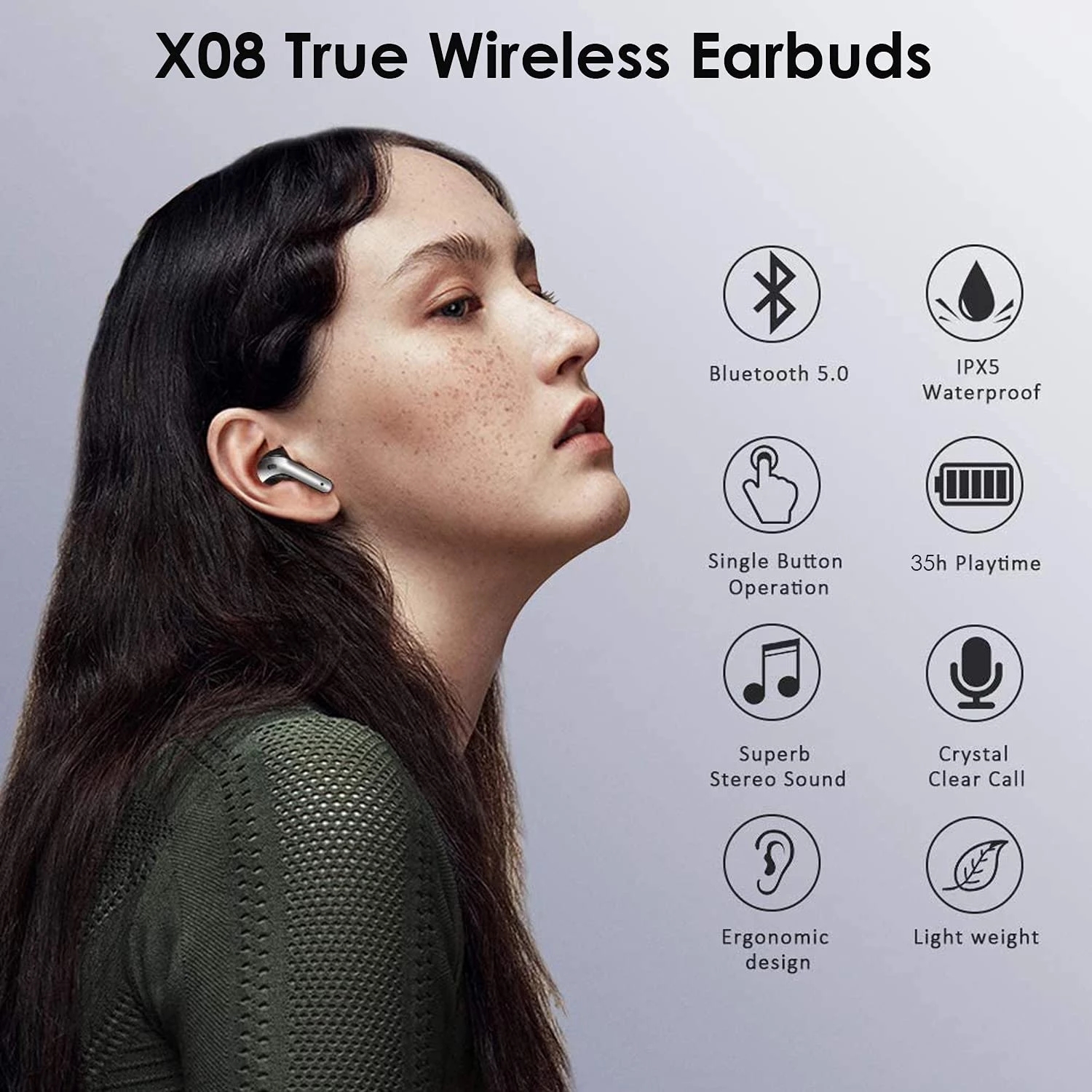 【2022 NEW】COTIN X08 Bluetooth Headphones True Wireless Earbuds 60H Playback LED Power Display Earphones with Wireless Charging Case IPX5 Waterproof in-Ear Earbuds with Mic for TV Smart Phone Computer