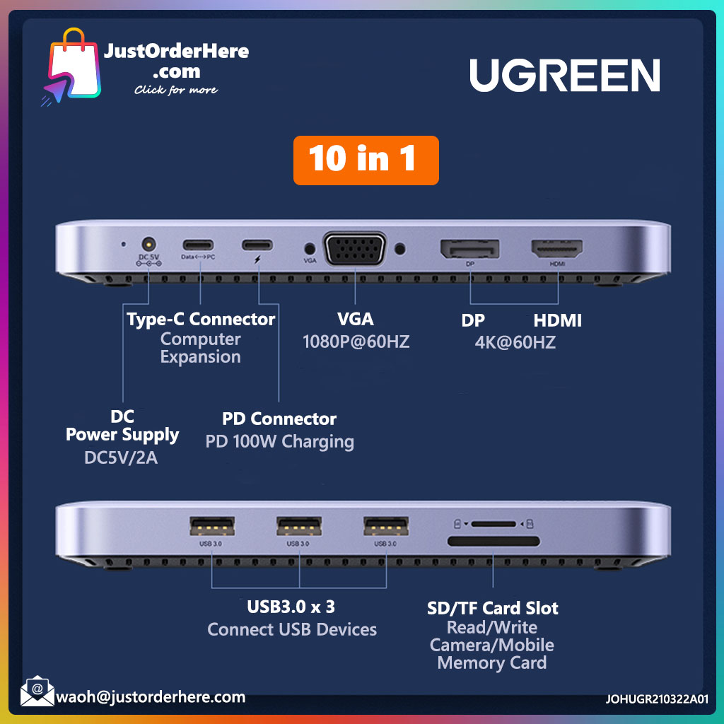 Ugreen 10 in 1 Multi-Functional Flat Table Top Docking Station (Mac/Windows)