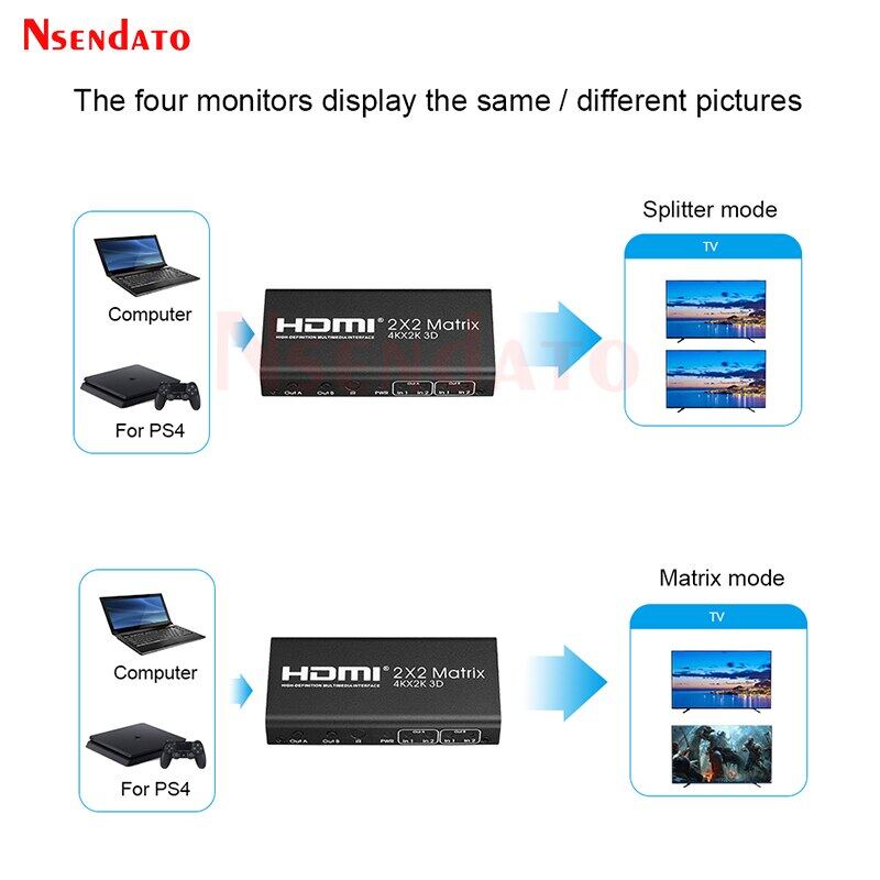 2x2 HDMI Matrix Switch Splitter 2 in 2 out 4k HDMI Matrix Switcher 2x2 HDMI Conmutador Splitter for PS5 DVD PC to HDTV Monitor