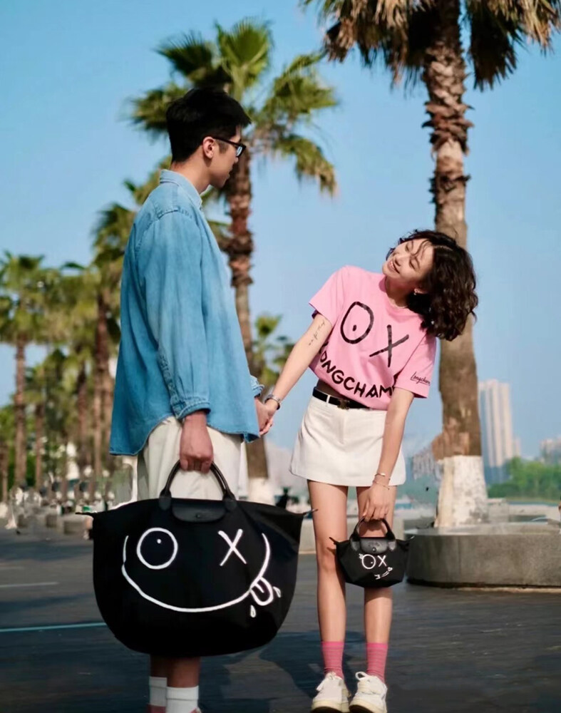 【SS22】100% original Longchamp official store bag L1624 graffiti large capacity travel bag long champ bags Duffel & Weekender Bags