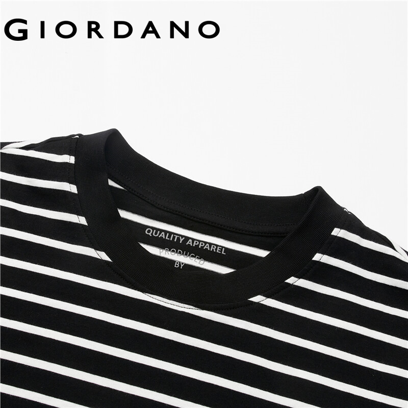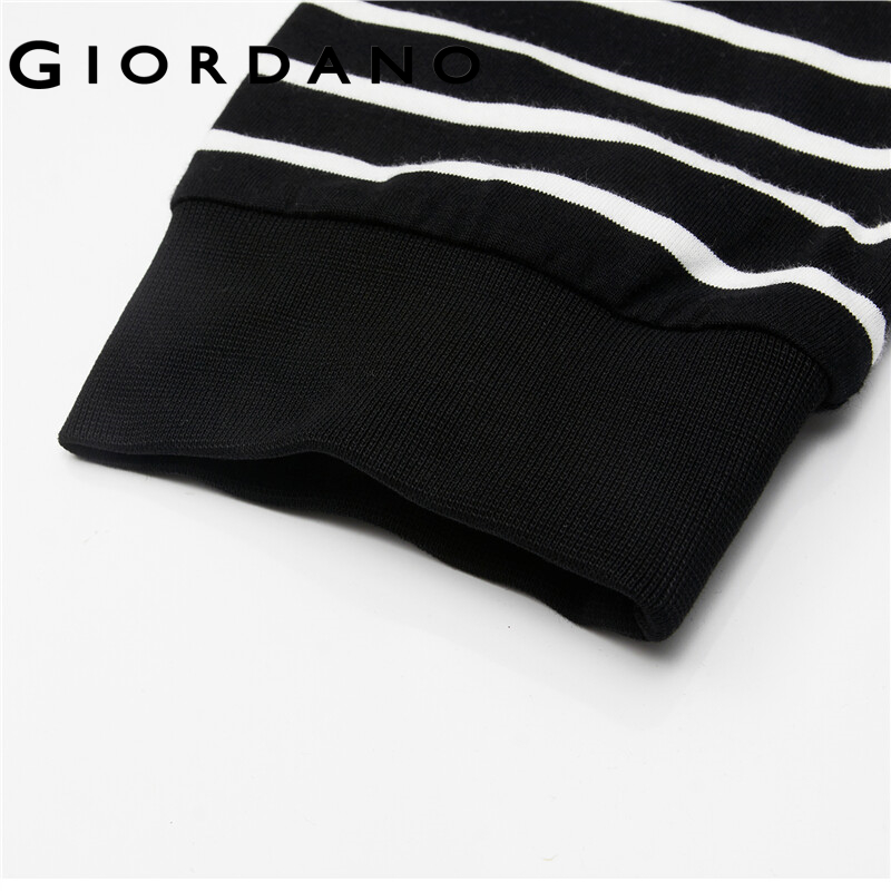 GIORDANO Women T-Shirts Long Sleeve Ribbed Crewneck Casual T-Shirts 100% Cotton Contrast Color Stripe Relaxed Comfy Tee 05322790