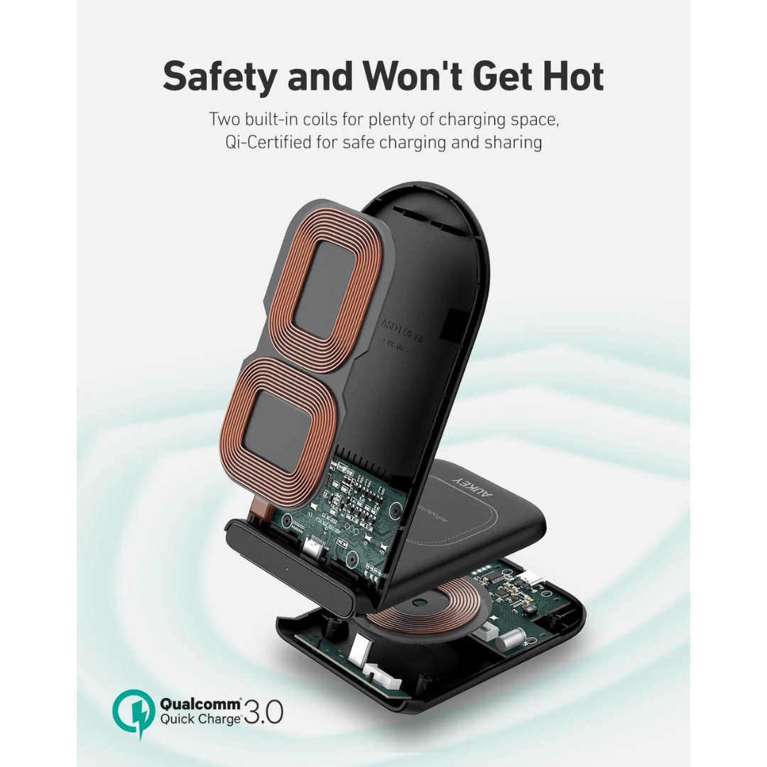 Aukey LC-A2 Aircore Series 2-in-1 Wireless Charging Stand | 18-month warranty by AUKEY SINGAPORE