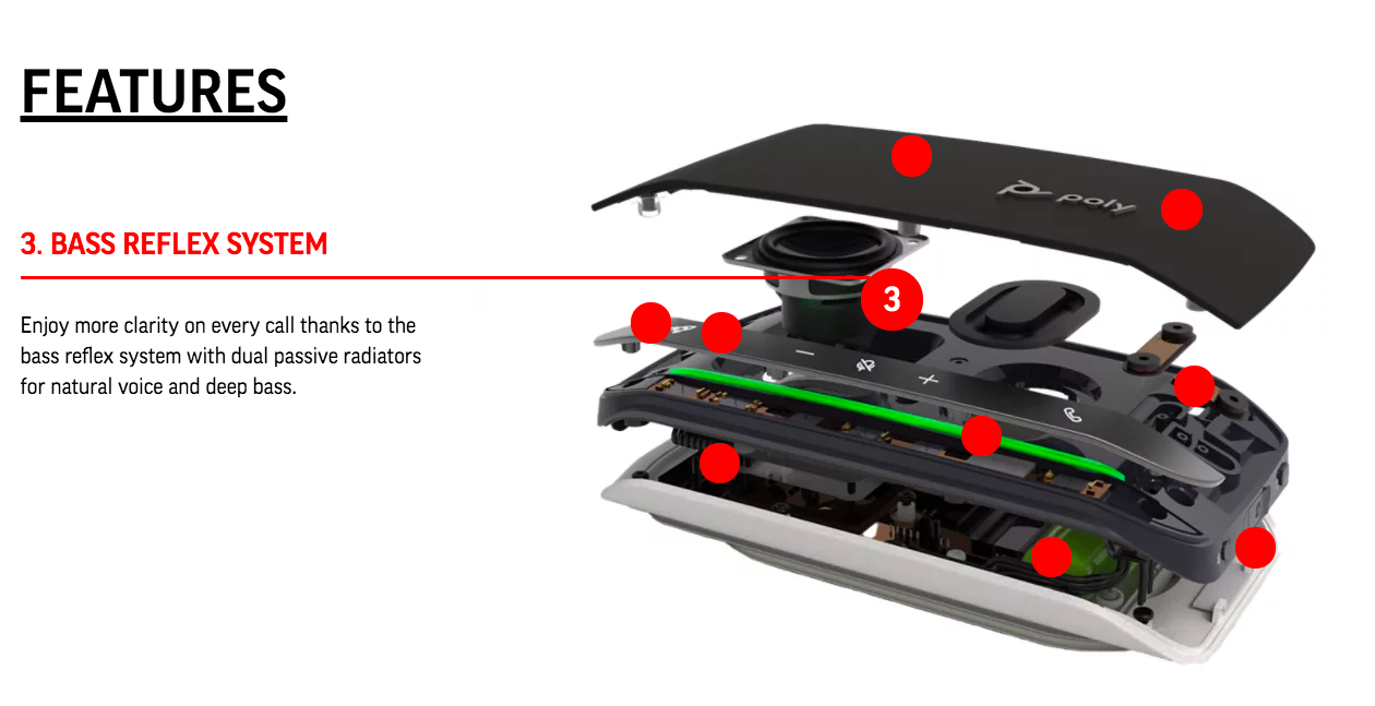 Enjoy more clarity on every call thanks to the bass reflex system with dual passive radiators for natural voice and deep bass
