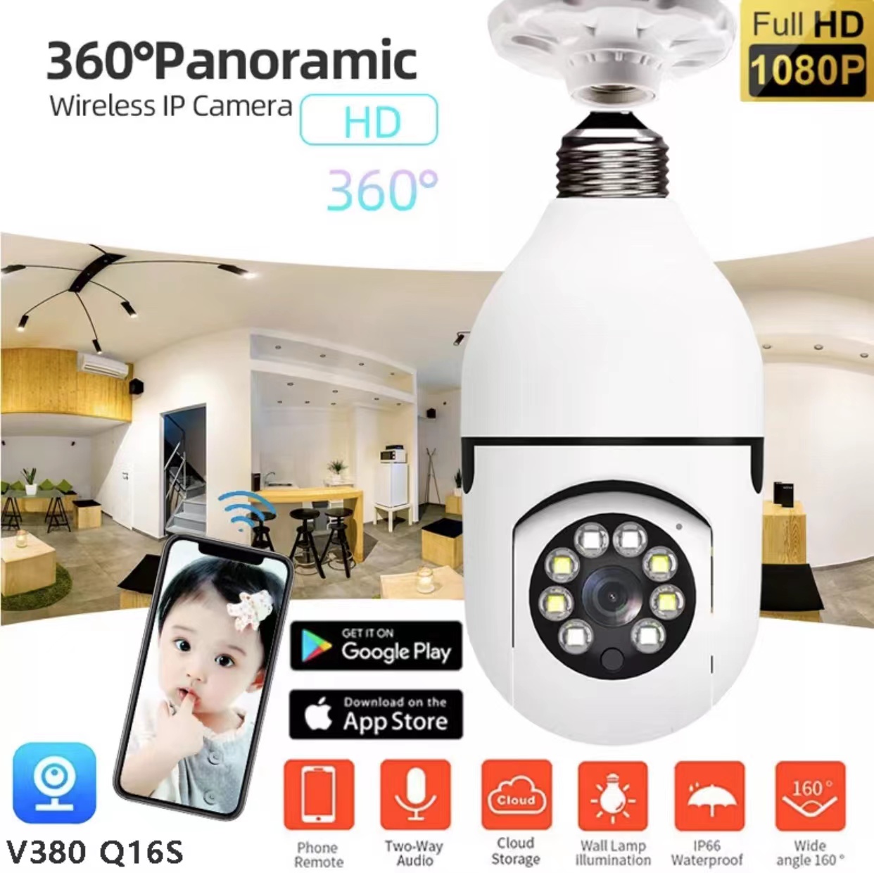 【good quality】CCTV Camera For House 360° LED Bulb Full HD 1080P Wireless Home Security WiFi CCTV IP Camera Two Way Audio Panoramic Night Vision home camera
