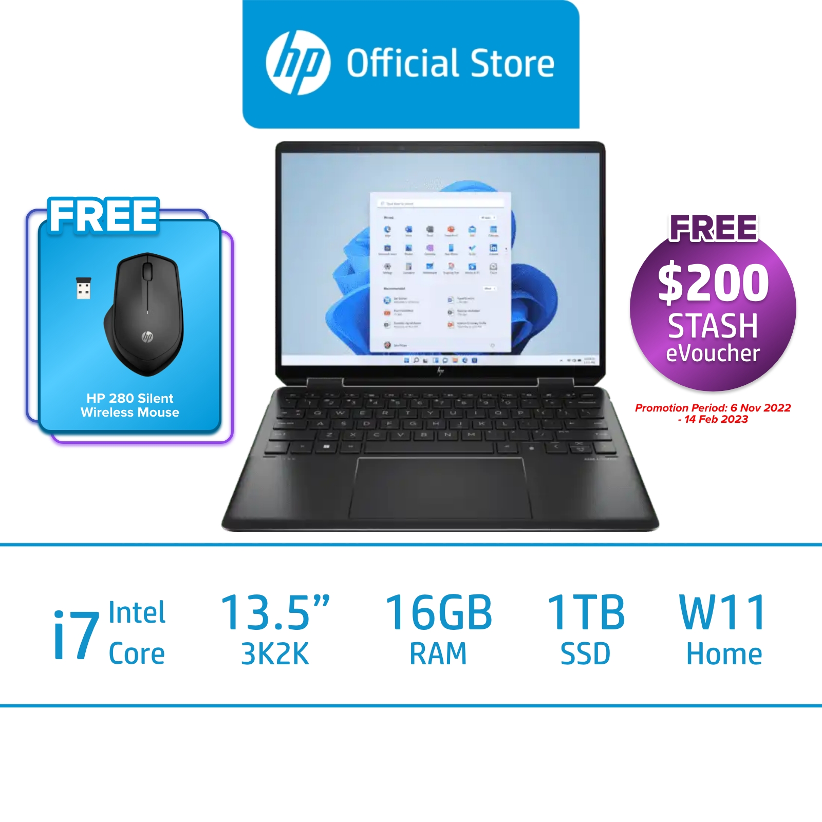 HP ENVY x360 2-in-1 Laptop 13-bf0065TU / Intel Core i7-1250U / Intel Iris X Graphics / 16GB RAM / 1 TB SSD / 2 Years ADD / 2 Years Onsite Warranty