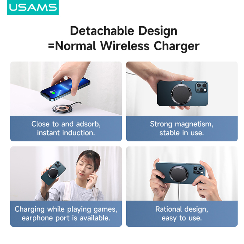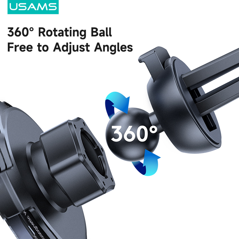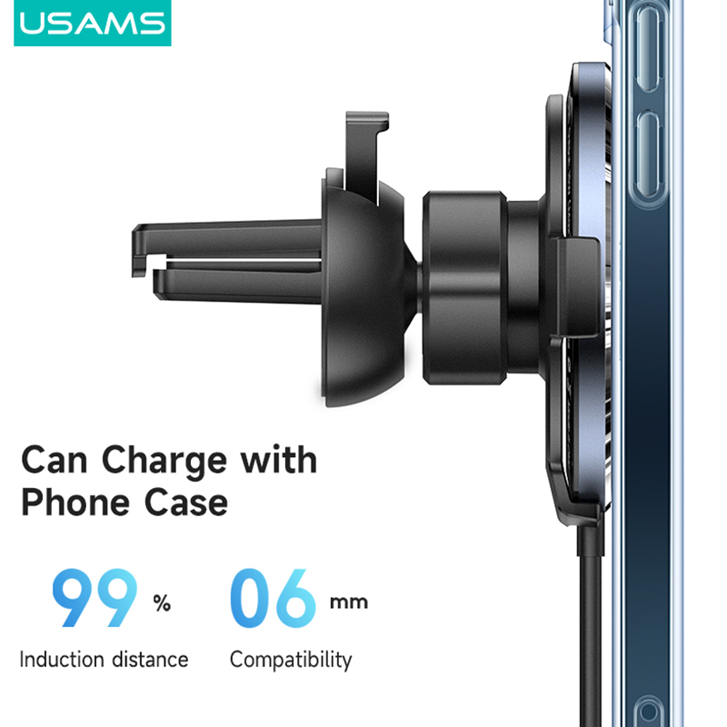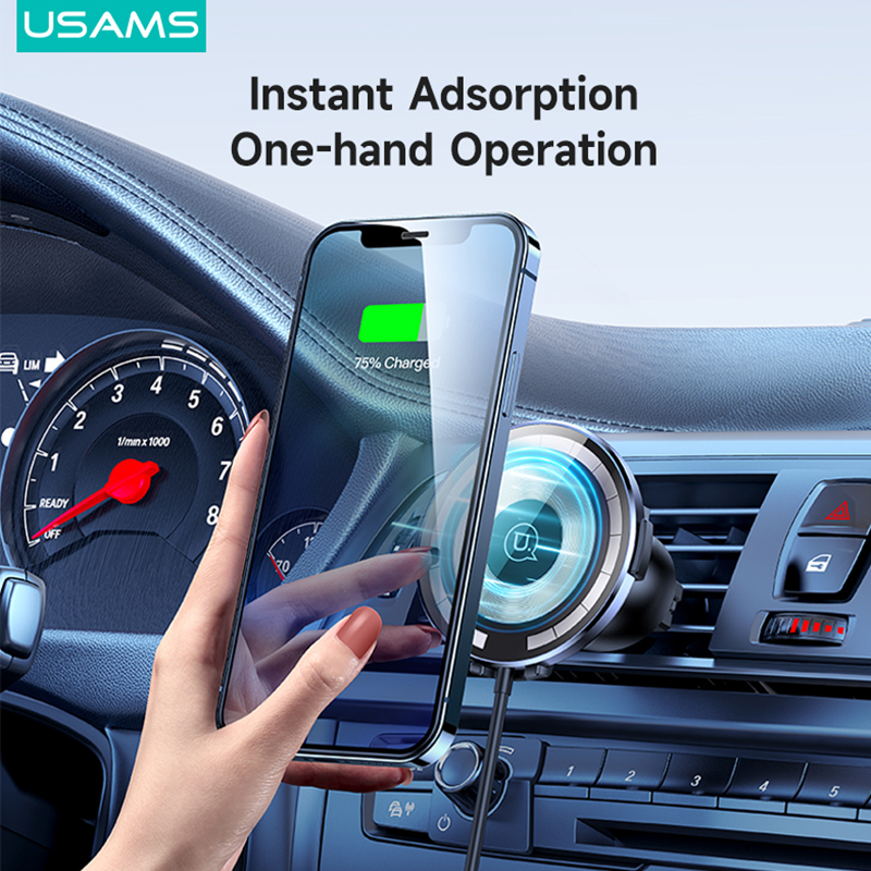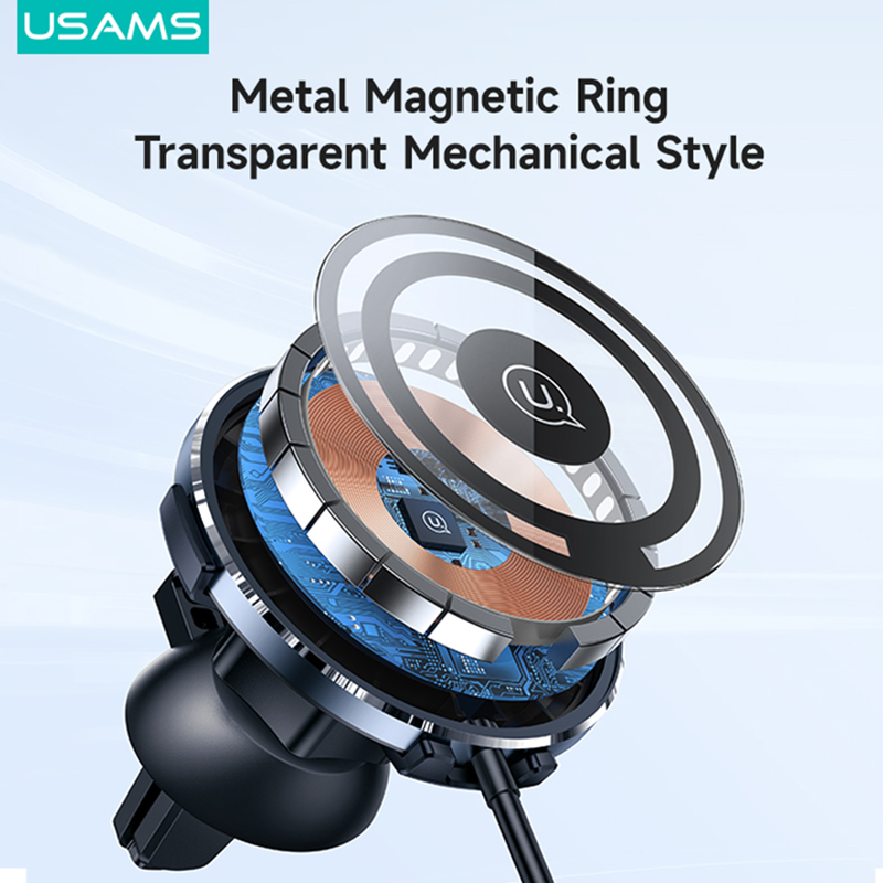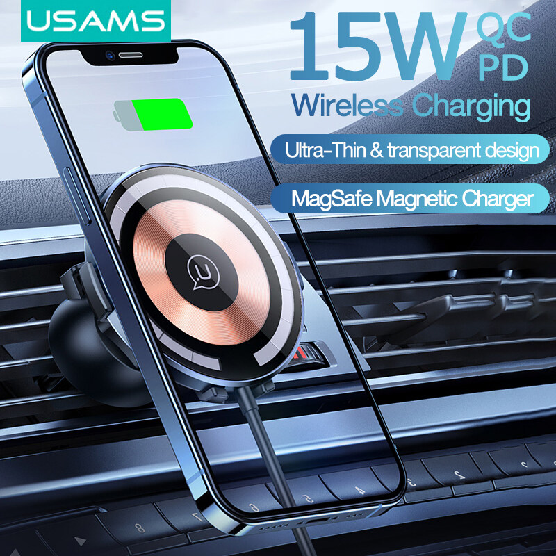 USAMS Magnetic Wireless Charger 15W Magsafe Charge+Car Phone Holder Transparent Design Ultra-Thin PD Fast Charging For iP/Xiaomi /Samsung / Oppo / Vivo / Huawei/Sony