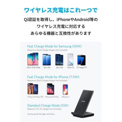 Anker PowerWave 10 Stand (improved version) Wireless charger Qi certified iPhone 12/12 Pro Galaxy Various support Up to 10W output (black)