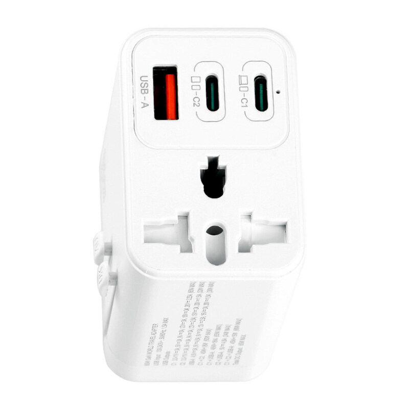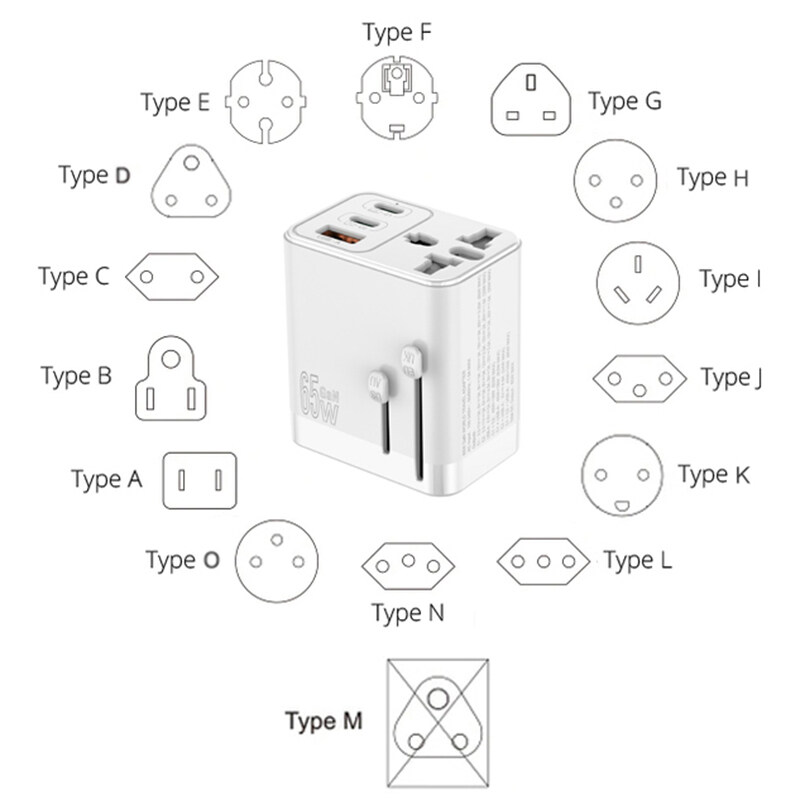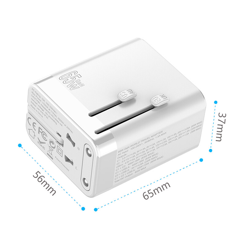 URVNS 65W GaN Travel Plug Adapter with 2USB-C PD and 1USB-A Worldwide Universal Charger UK EU AU US Converter for Laptops Phones Tablets