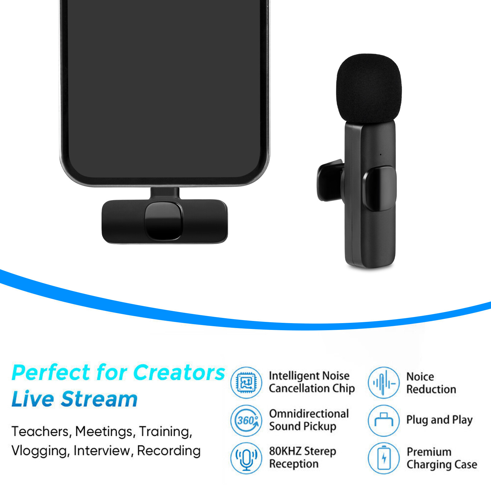 Meking Mini Wireless Lavalier Microphone For iPhone iPad Type C Android Recording Vlog