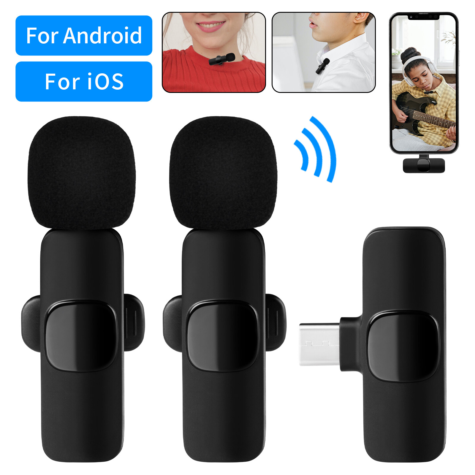 【Connector with wide Compability 】- The wireless lavalier microphone can work with all iPhone , Type-C connector Phone , iPad , Pad, Table.
