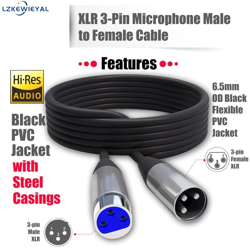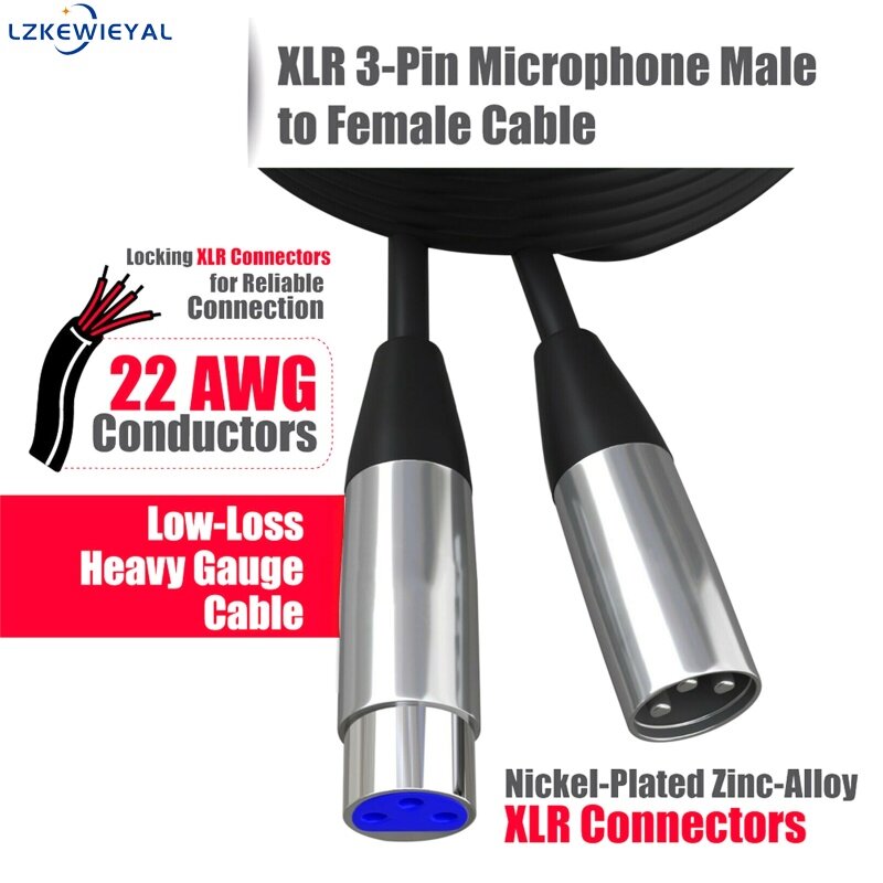 Lzkewieyal【100%Original】Xlr Microphone Cable 3-pin Male To Female Audio Cable Wire Connector Extension Shield Cord Accessories