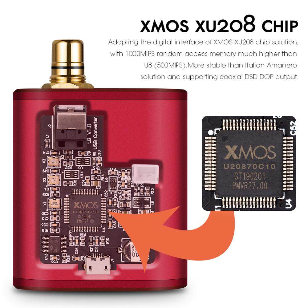 • Adopting the digital interface of XMOS XU208 chip solution, with 1000MIPS random access memory much higher than U8 (500MIPS). More stable than Italian Amanero solution and supporting coaxial DSD DOP output.