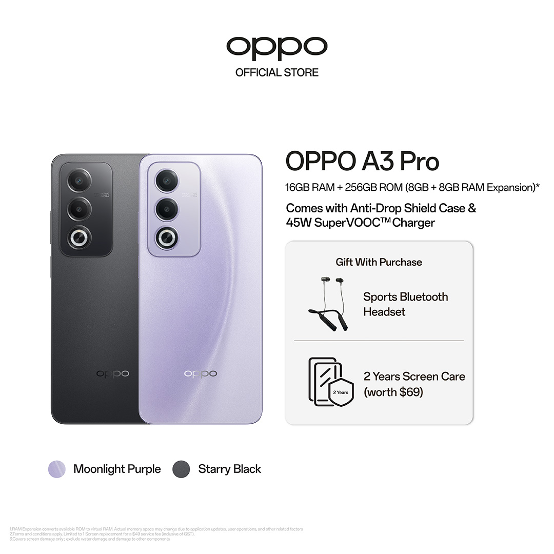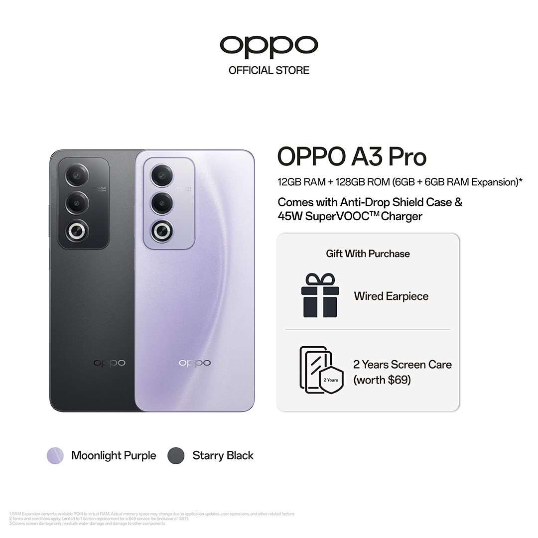 OPPO A3 Pro 5G 16(8+8GB) + 256GB / 360° Damage-Proof Armour Body / 45W SUPERVOOC Charge / 5100mAh Battery / Splash Touch / 2 Years Local Warranty + 2 Years Screen Care