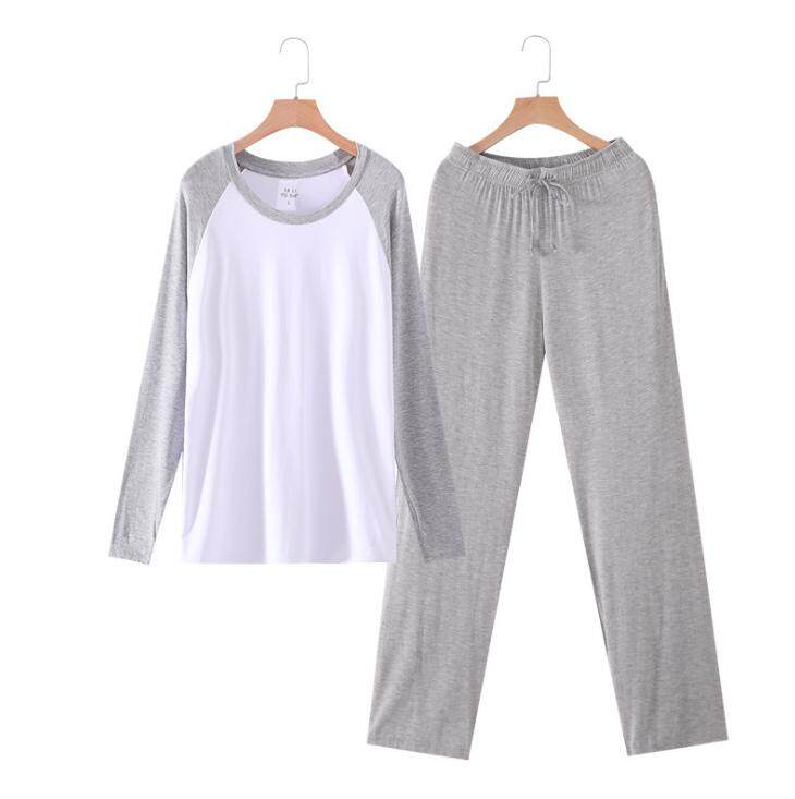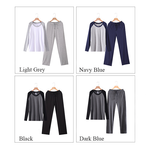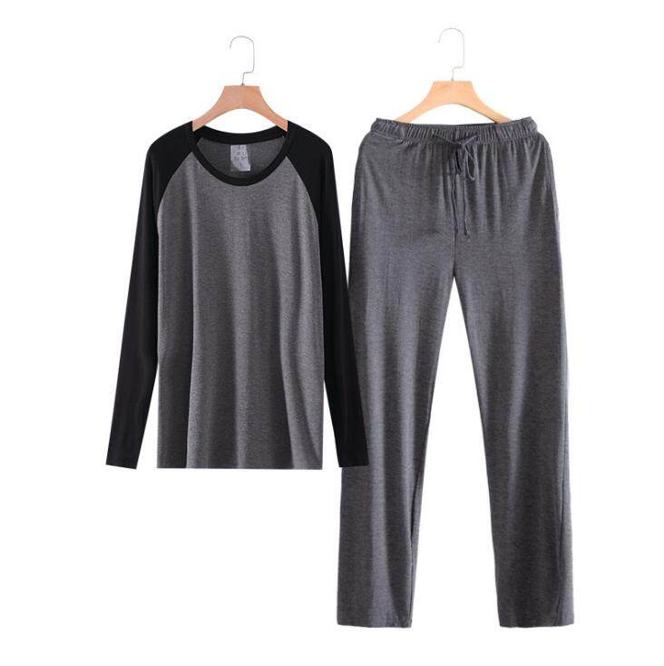 Yehury Autumn Mens Pajamas Set Long Sleeve Casual Soft Shirt Sleep Bottom Pants 2pcs Set Men Bamboo Fiber Home Clothes Plus Size Father's Gift