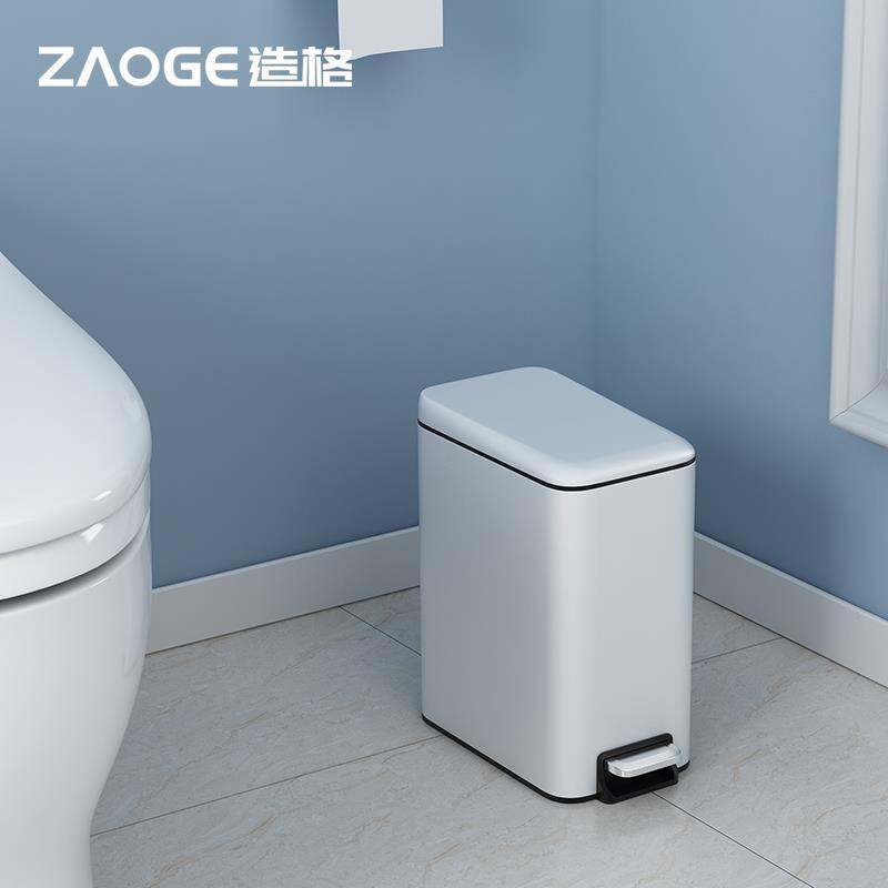 Rectangular Narrow-Slit Stainless Steel Trash Can, Household Toilet with Lid, Toilet Pedal Type, Small Foot with Lid