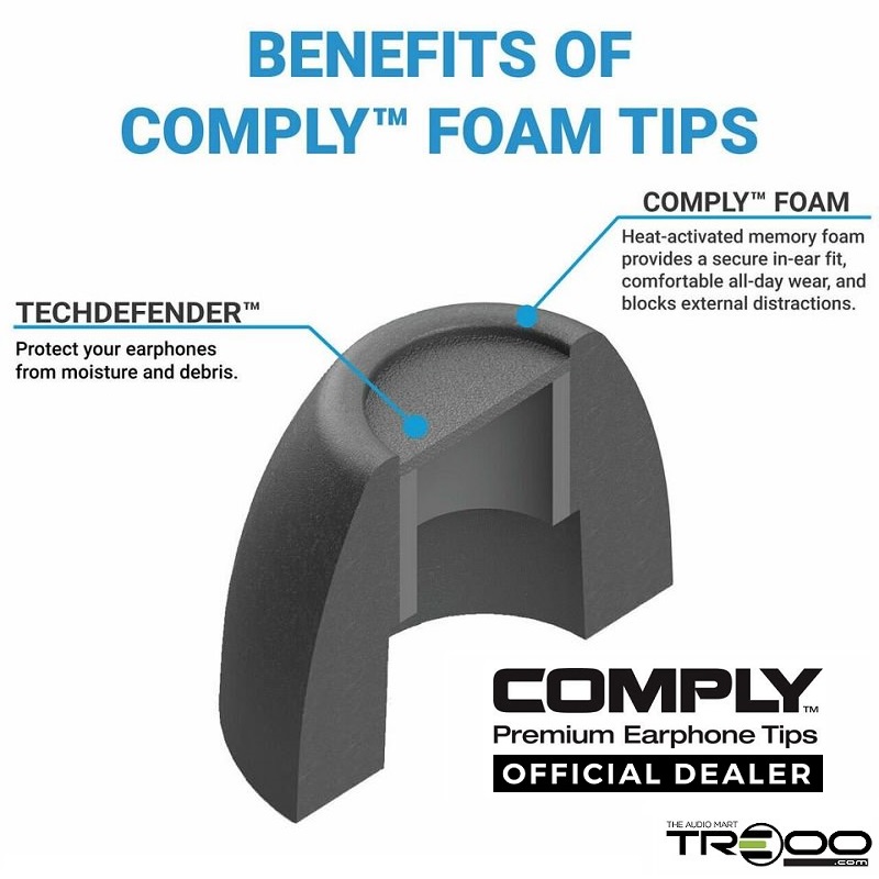 Comply TrueGrip Pro TW-200-C Foam Eartips (for Earfun, Lypertek, PadMate, Sony, etc. True Wireless Earbuds)