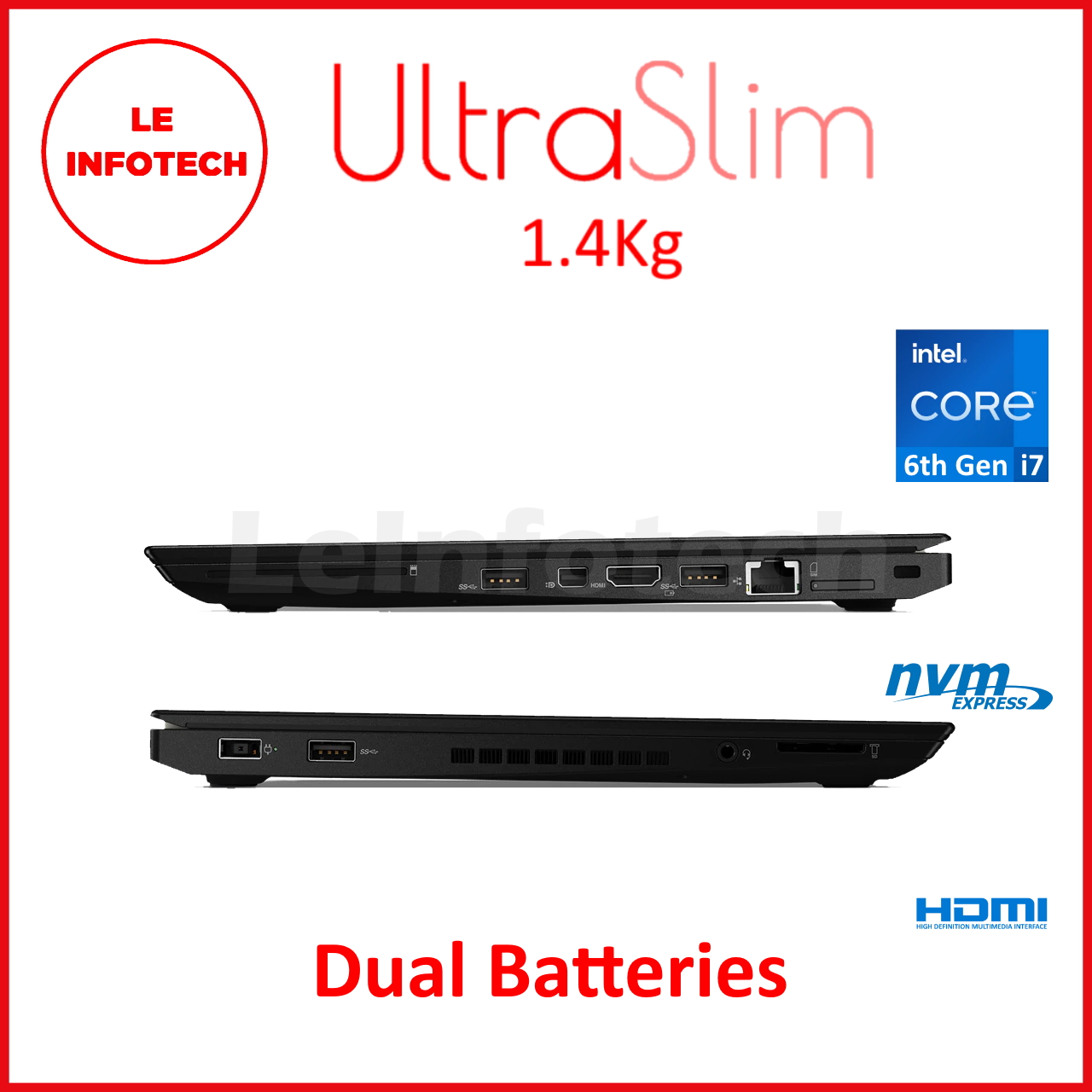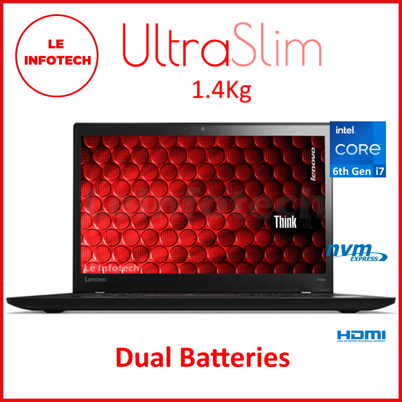Lenovo ThinkPad T460s 14” Business Ultrabook Laptop Intel Core i7-6600U 2.6GHz 8/20GB DDR4 New 256/512GB/1TB M.2 NVMe SSD with Charger WebCam HDMI Mini DP MS Win10 Pro Used 30 Days Warranty - LeInfote