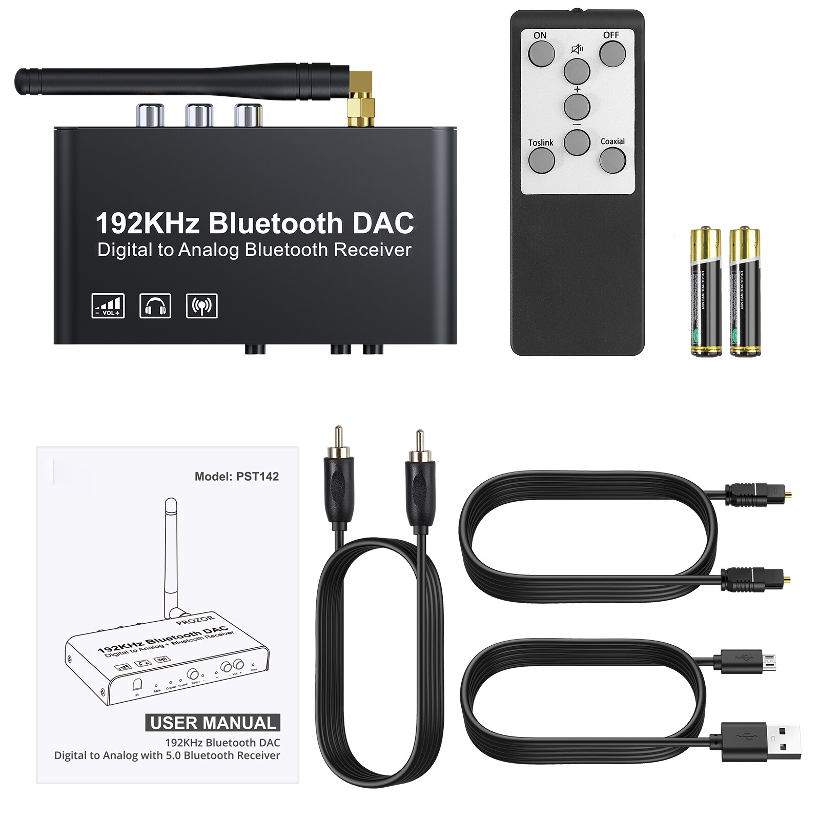 Digital to Analog Audio Converter is converts Coaxial or Toslink digital audio signals to analog L/R audio and available for connection to an external device. Built-in Bluetooth receiver module, supports mobile phone Bluetooth audio push, Bluetooth 5.0 lossless transmission technology.
