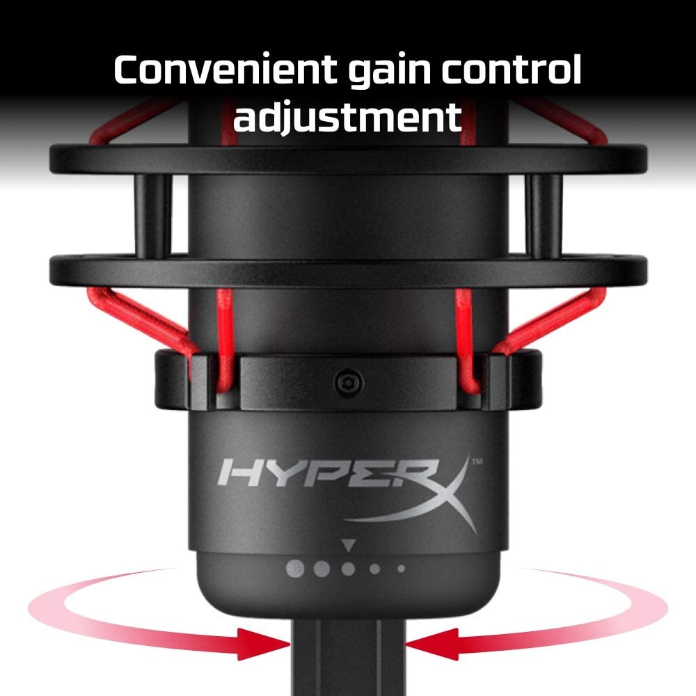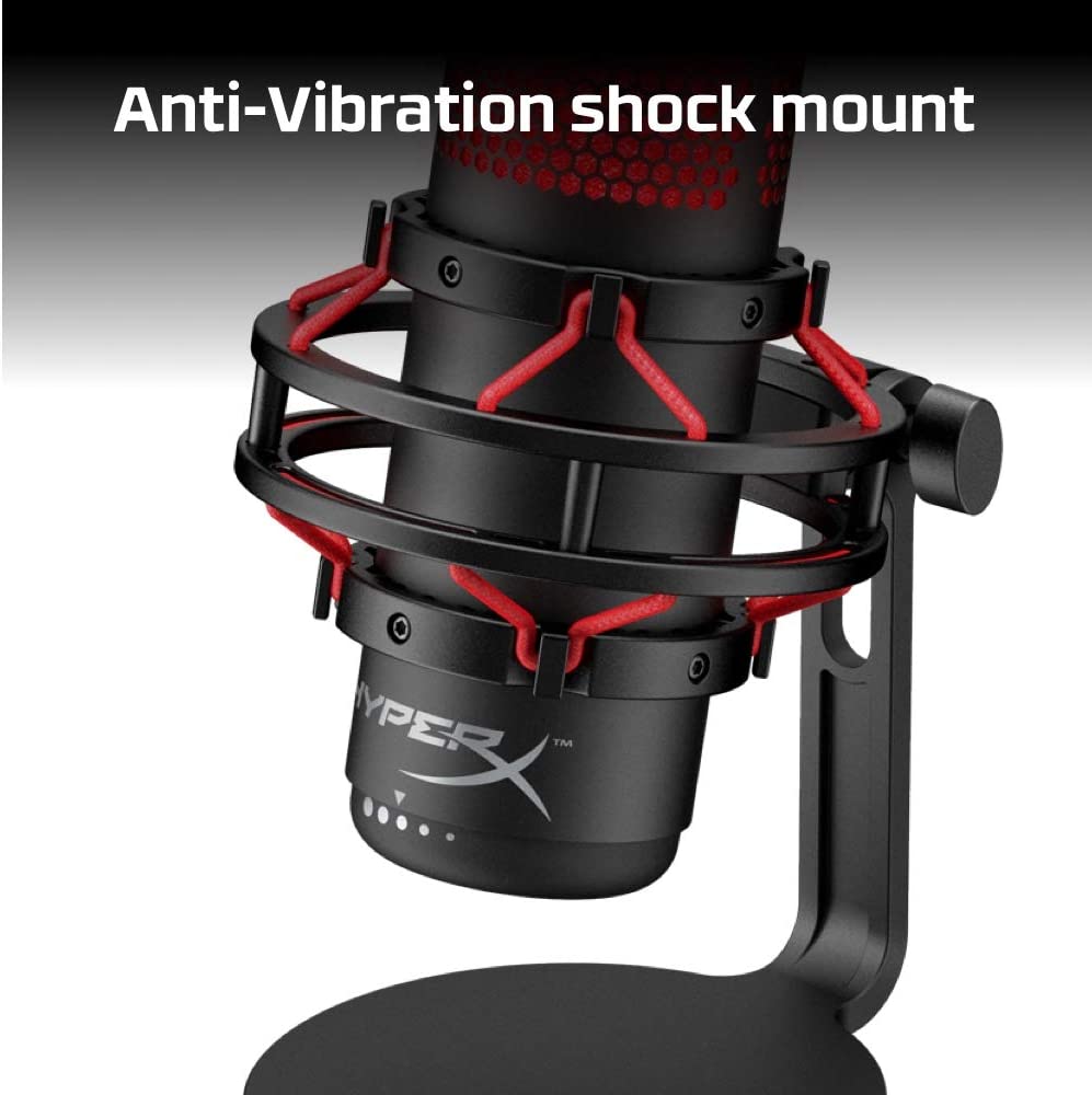 HyperX QuadCast USB Condenser Gaming Microphone, for PC, PS4, PS5 and Mac, Anti-Vibration Shock Mount, Four Polar Patterns, Pop Filter, Gain Control, Podcasts, Twitch, YouTube, Discord, Red LED