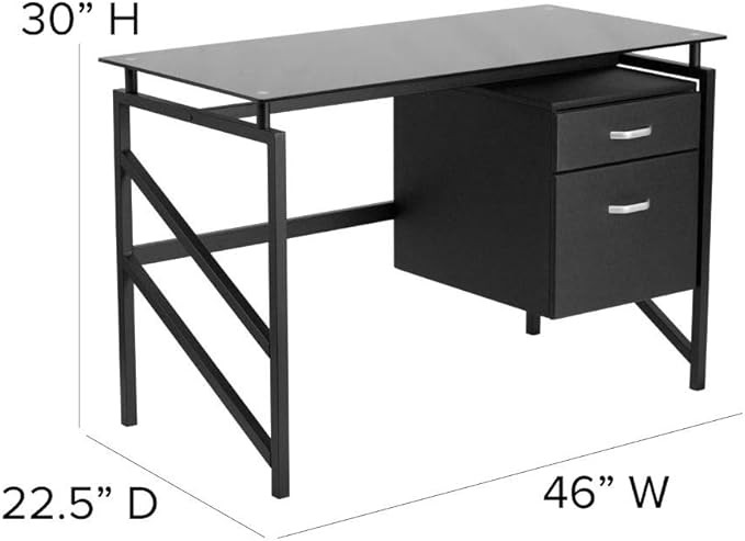 Flash Furniture Singleton Glass Desk with Two Drawer Pedestal,Black