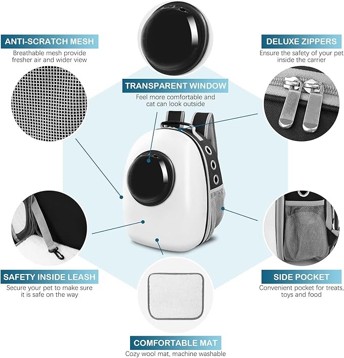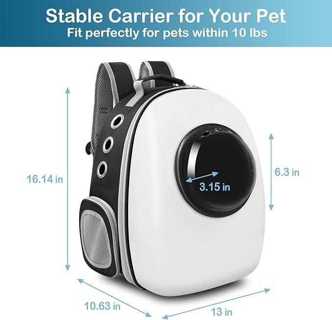 Henkelion Cat Backpack Carrier Bubble Bag, Space Capsule Shell Dog Backpack Carrier for Small Pets Dogs, Pet Carrier Dog Backpack Airline Approved Travel Carrier - White